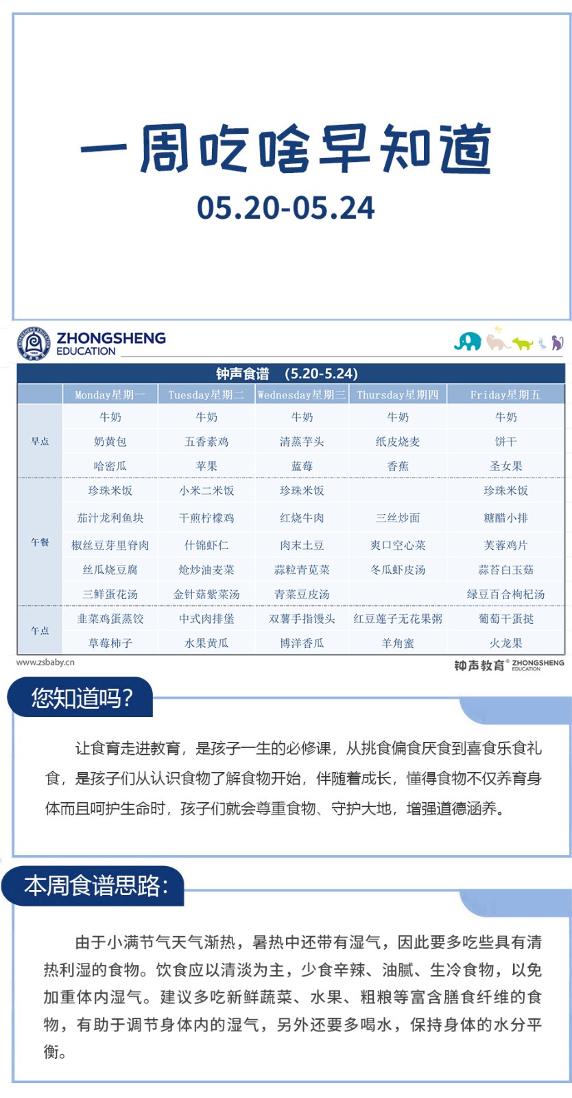 一周吃啥早知道 | 钟声红色幼儿园食谱分享