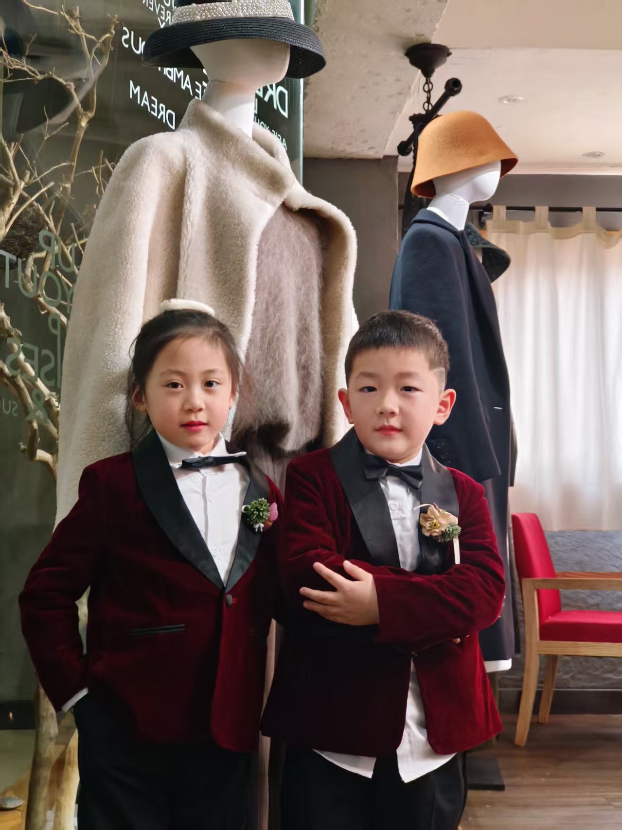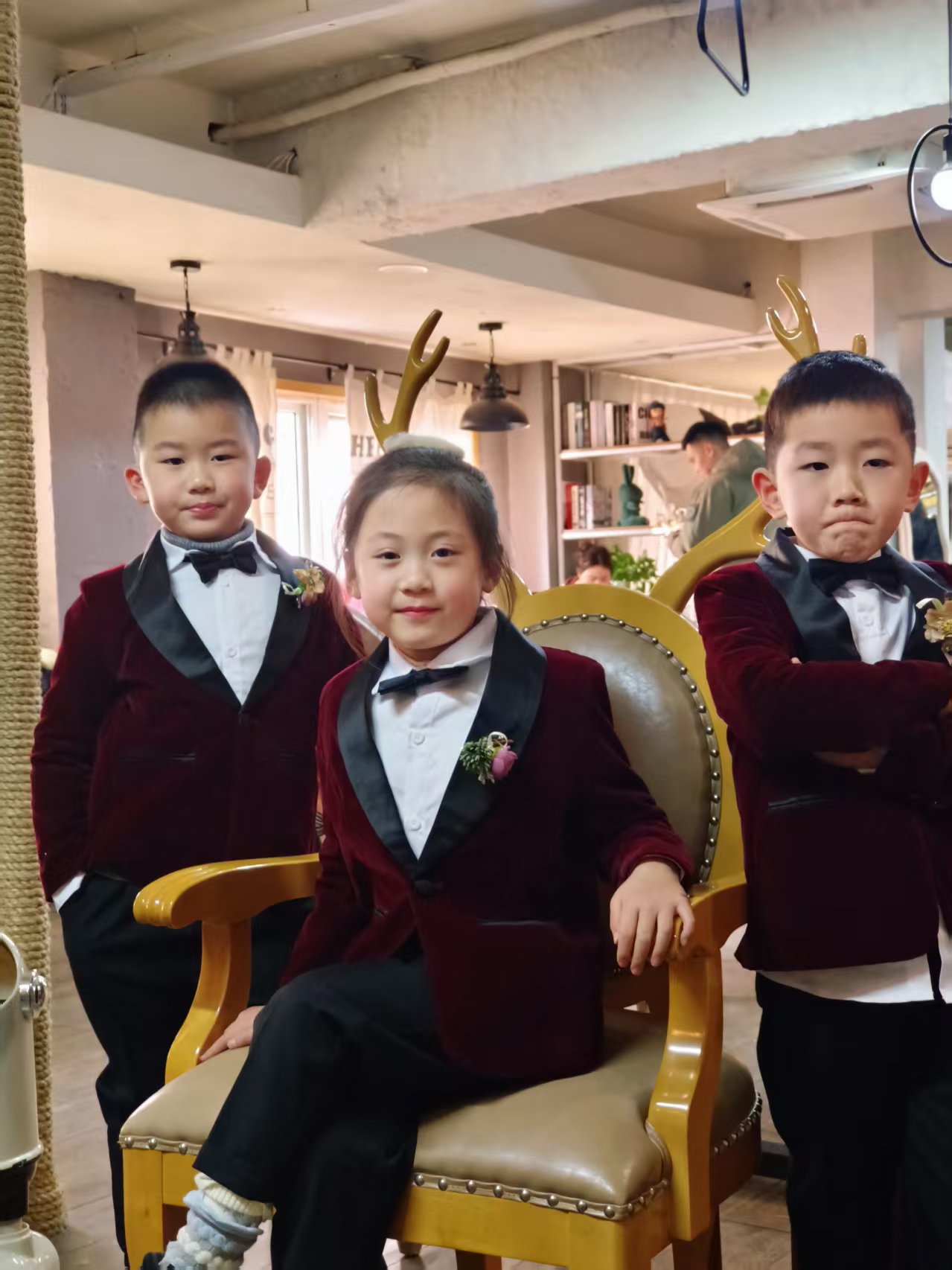 活动间隙,宝贝们又切换成活力满满的小模特:在鹿角座椅旁摆起俏皮 pose,在装饰墙前比出可爱的 “耶”,每一张笑脸都洋溢着童真与自信。
