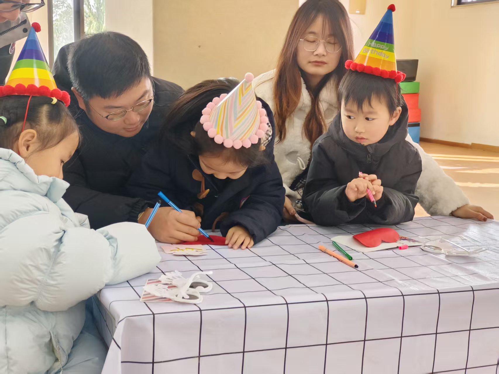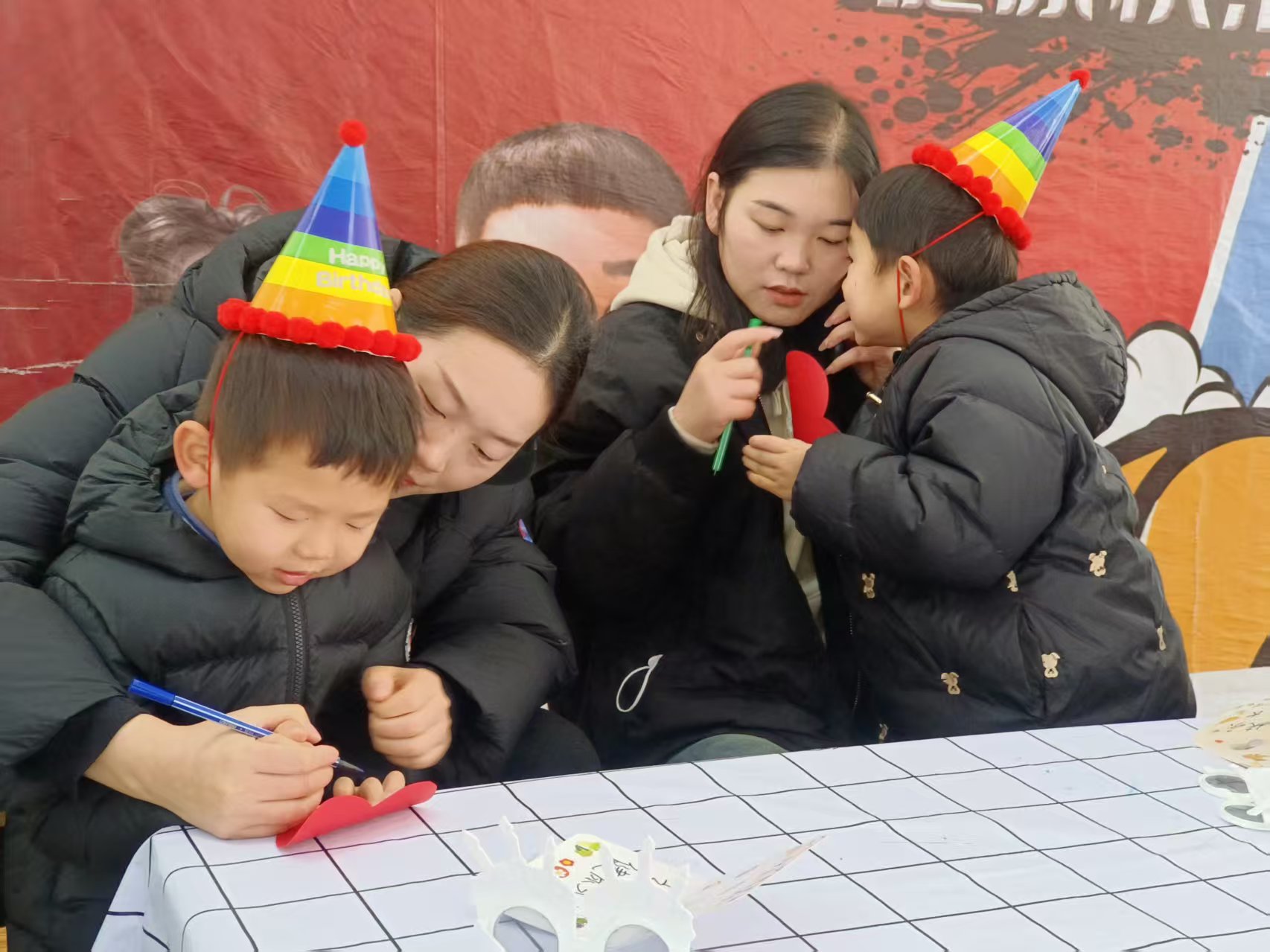 亲子手作环节更是将氛围推向了高潮。彩色卡纸、画笔、胶水整齐摆放,宝贝们化身小小艺术家,尽情挥洒创意,家长们则耐心陪伴在侧,或轻声指导,或携手创作。一笔一划、一粘一贴间,不仅是一件件充满童趣的作品诞生,更是亲子间默契与温情的悄然流淌。