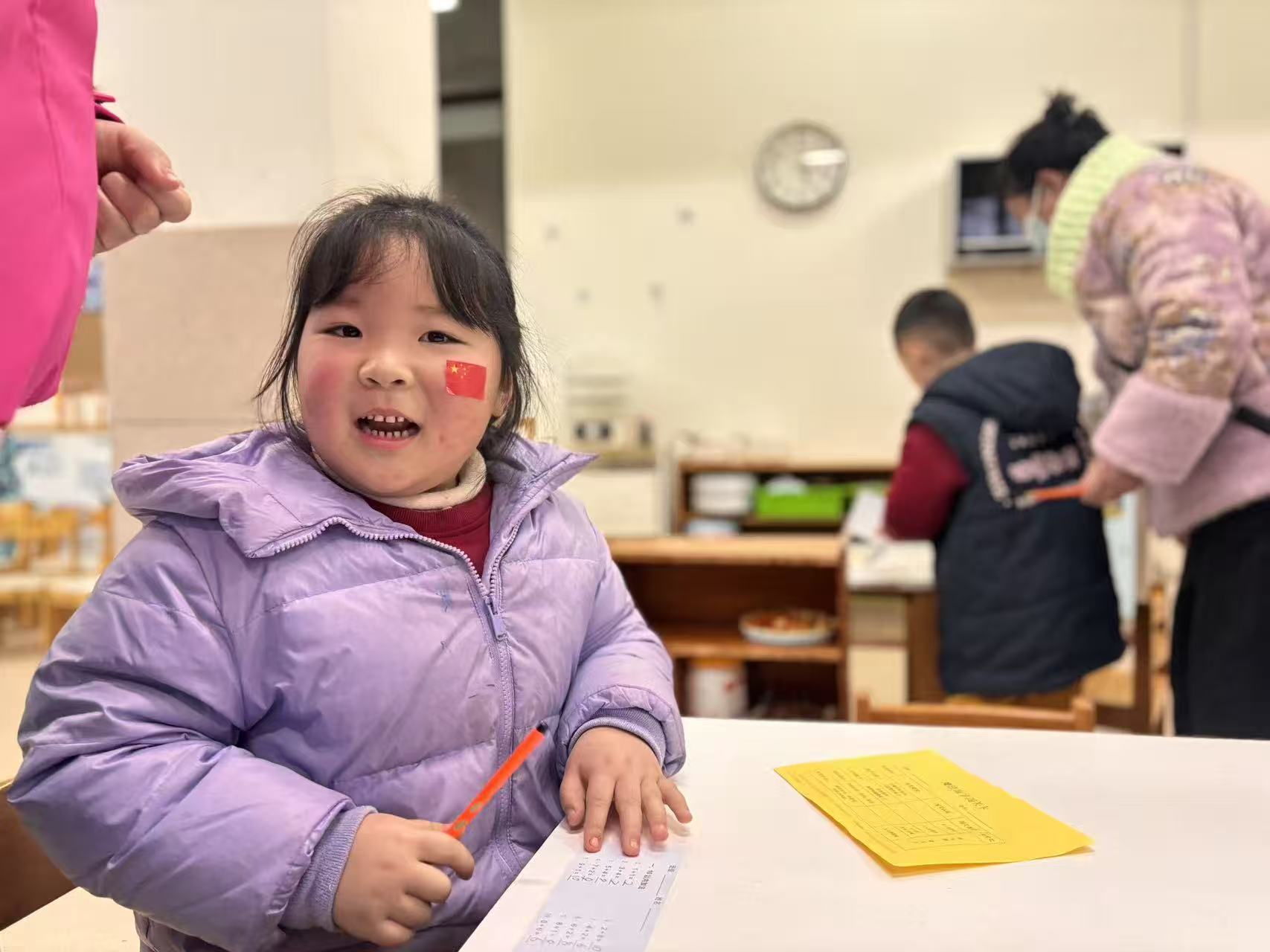 亲子互动环节更是温情满满。家长们俯身倾听孩子的分享,与孩子共同完成闯关任务,在陪伴中见证孩子的点滴进步。孩子们脸上贴着国旗贴纸,眼神坚定而自豪,在展示自我的同时,也将爱国情怀悄然根植于心。