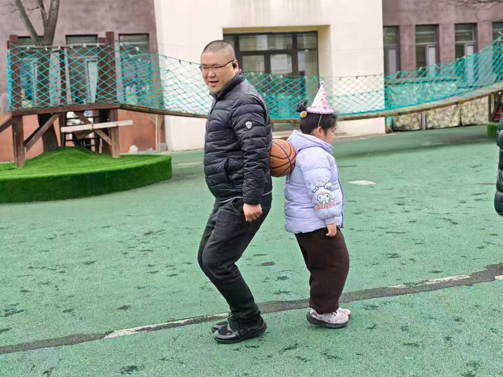 生日会怎么能少得了亲子互动呢!操场上,爸爸妈妈和宝贝们一起玩起了趣味游戏,背靠背运球、默契大挑战……大家齐心协力、互相配合,笑声、欢呼声此起彼伏。在游戏中,不仅拉近了亲子间的距离,更让孩子们感受到了来自家人的陪伴与爱,整个操场都充满了温暖与欢乐。