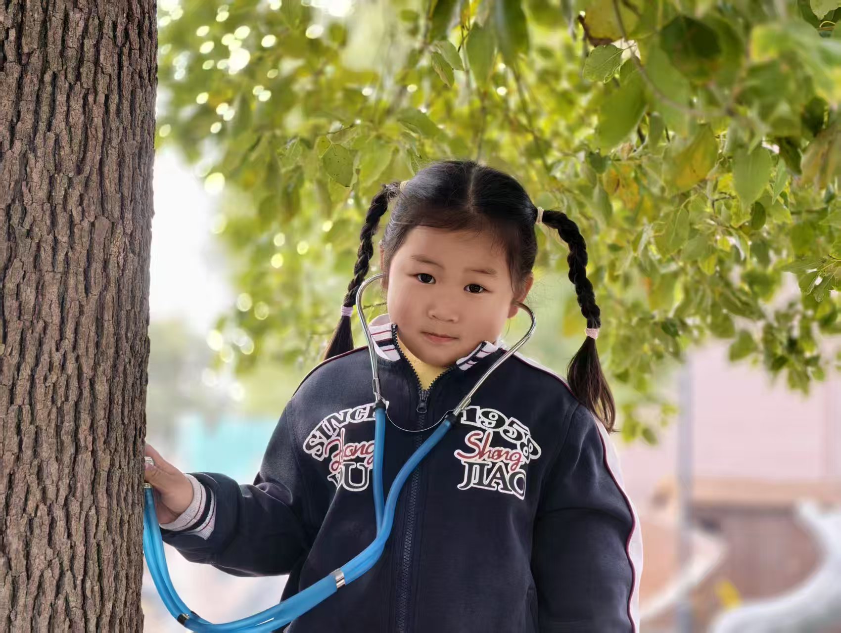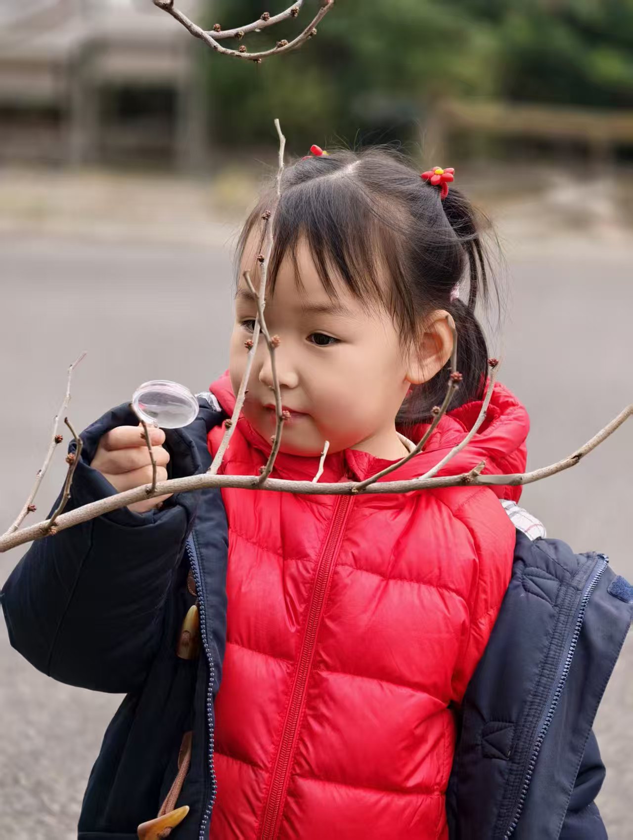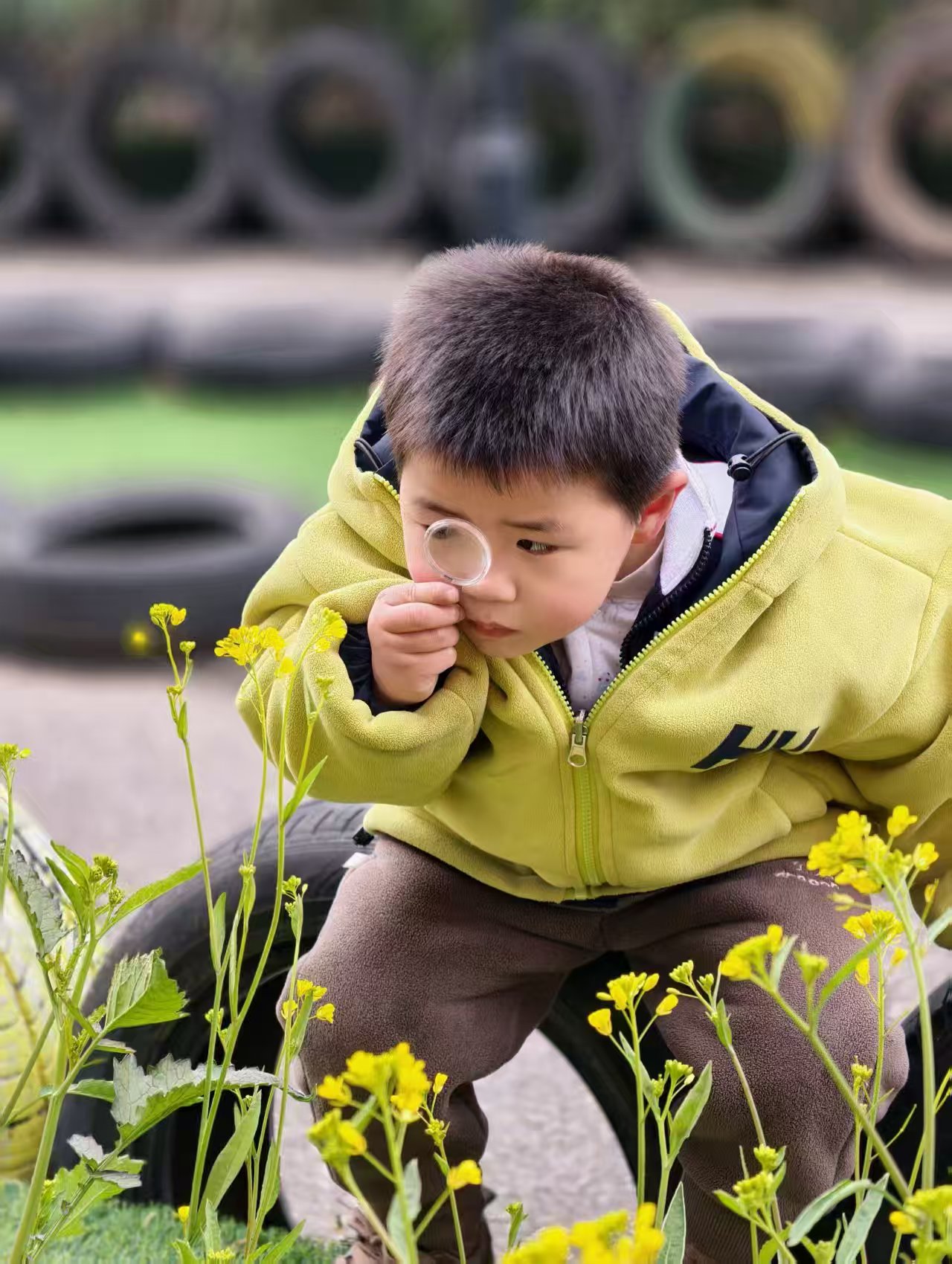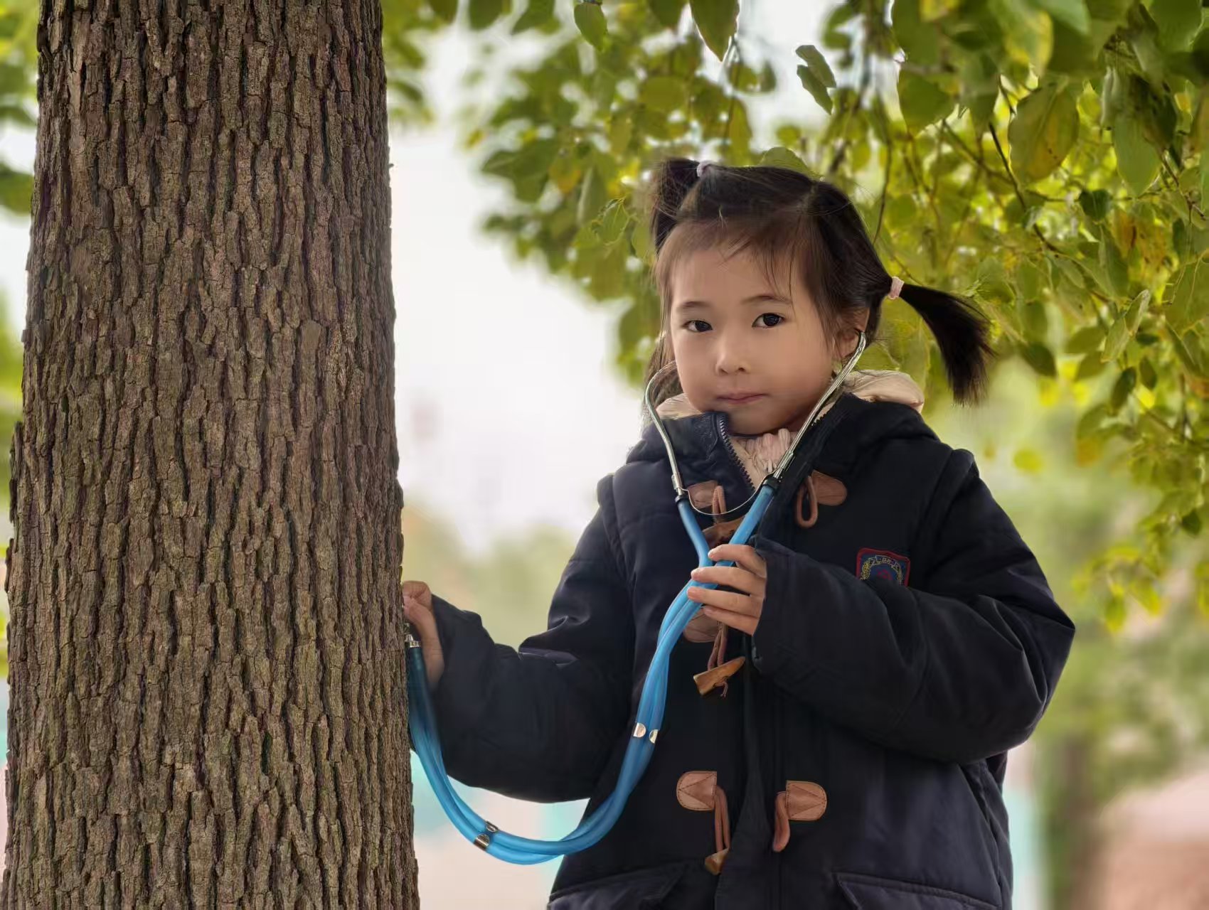 活动中,宝贝们化身小小探索家:用放大镜仔细观察树枝的新芽、油菜花的结构,用听诊器聆听大树的 “心跳”,用小试管收集落叶、探索自然的奥秘,用小篮子装满春日的美好。