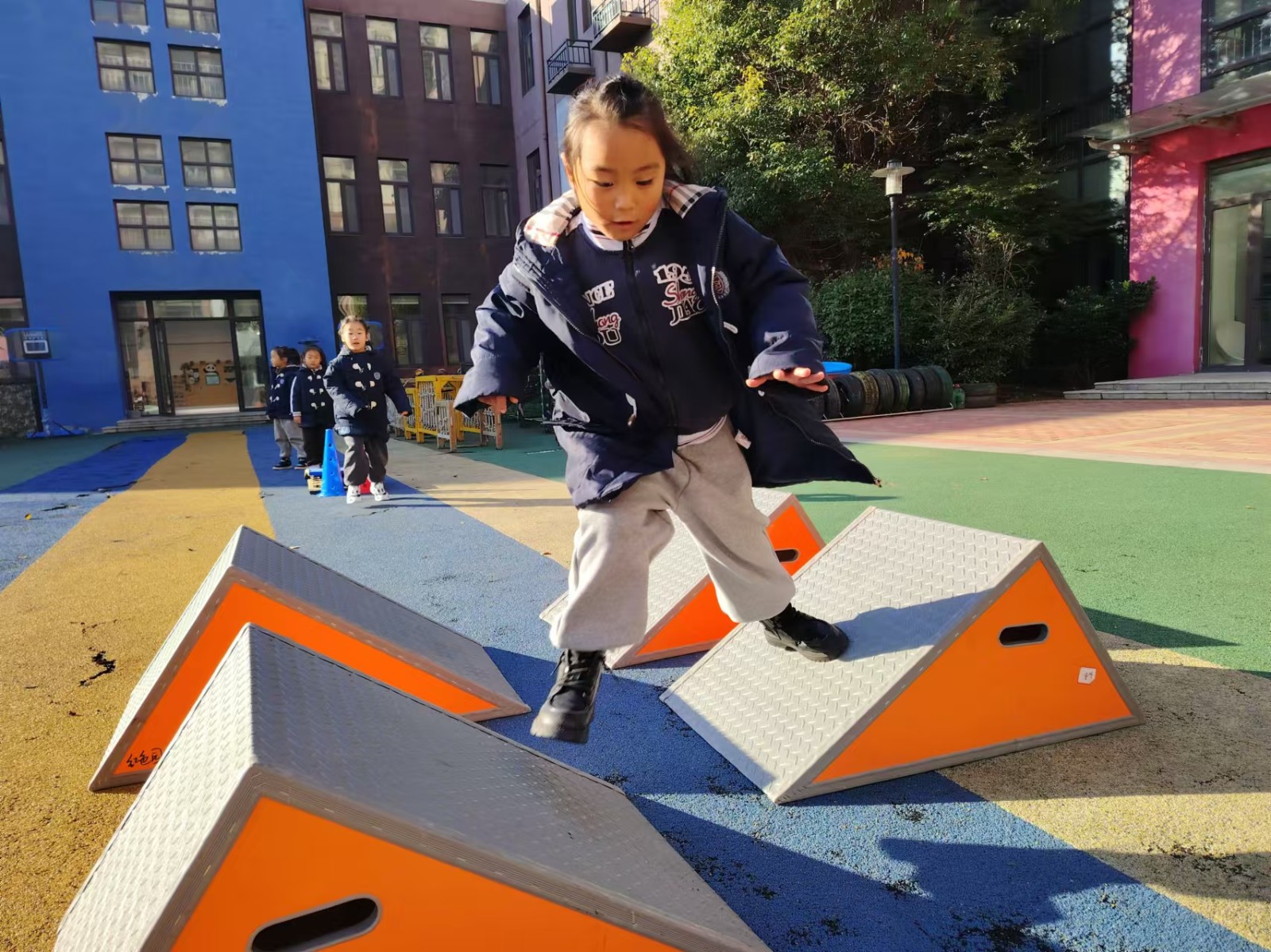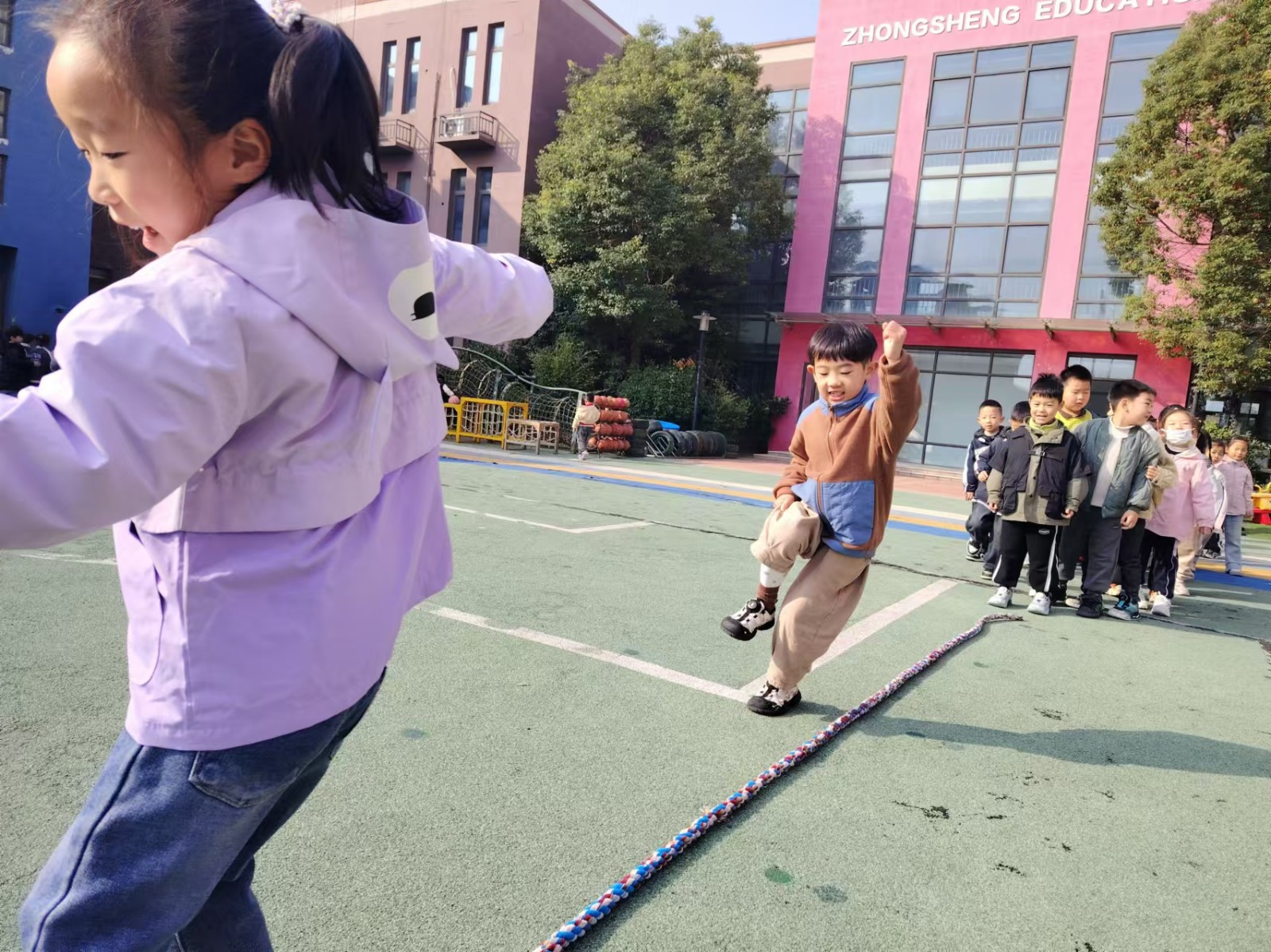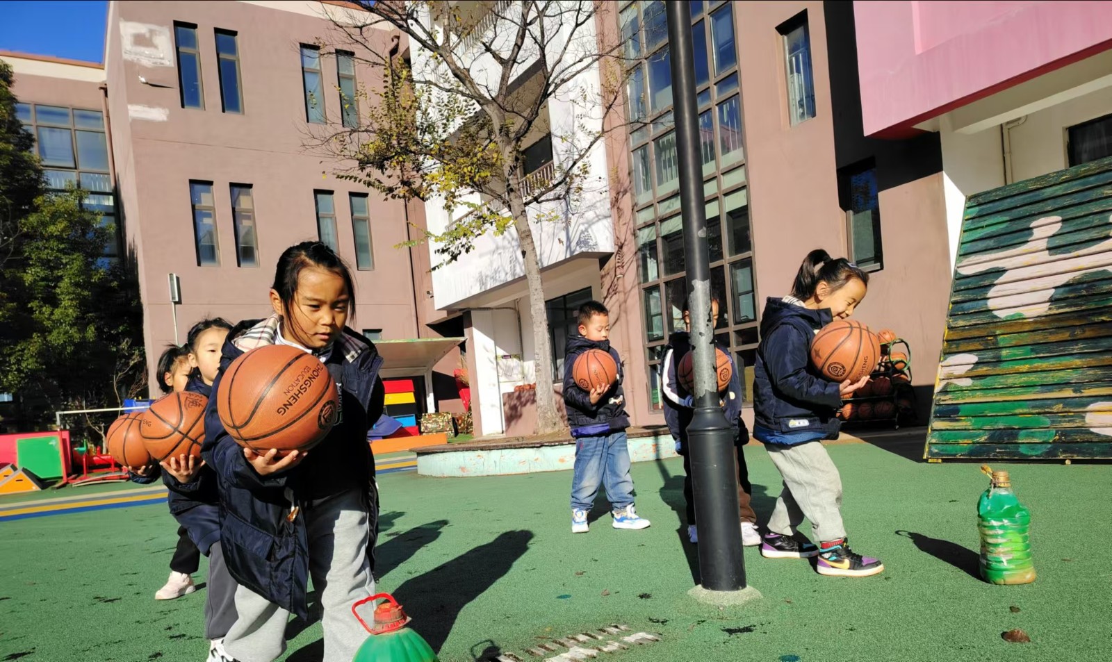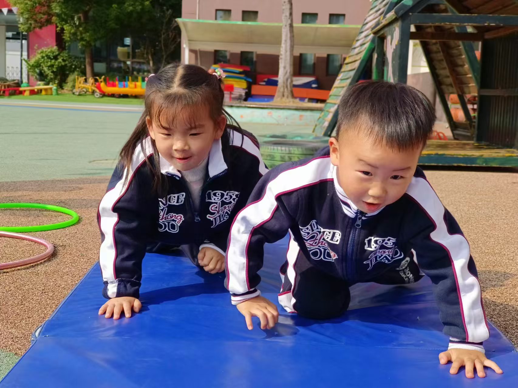 运动使人愉悦,运动使人强健。钟声红色园一直重视幼儿体能发展,在丰富多彩的晨间户外活动中不断增强体质,培养幼儿的耐力和韧性,促进幼儿体智能全面发展。