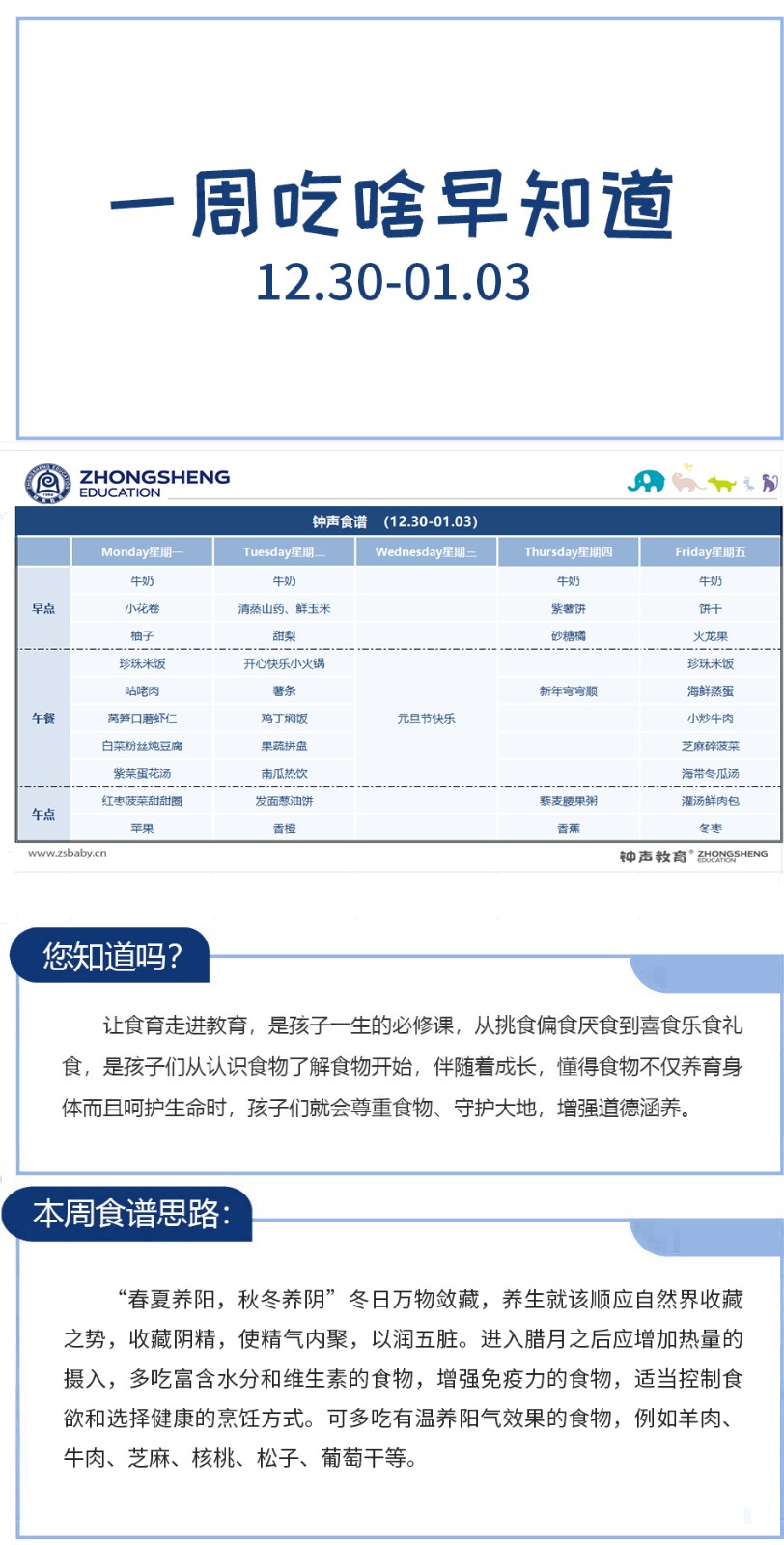 一周吃啥早知道 | 钟声红色幼儿园食谱分享