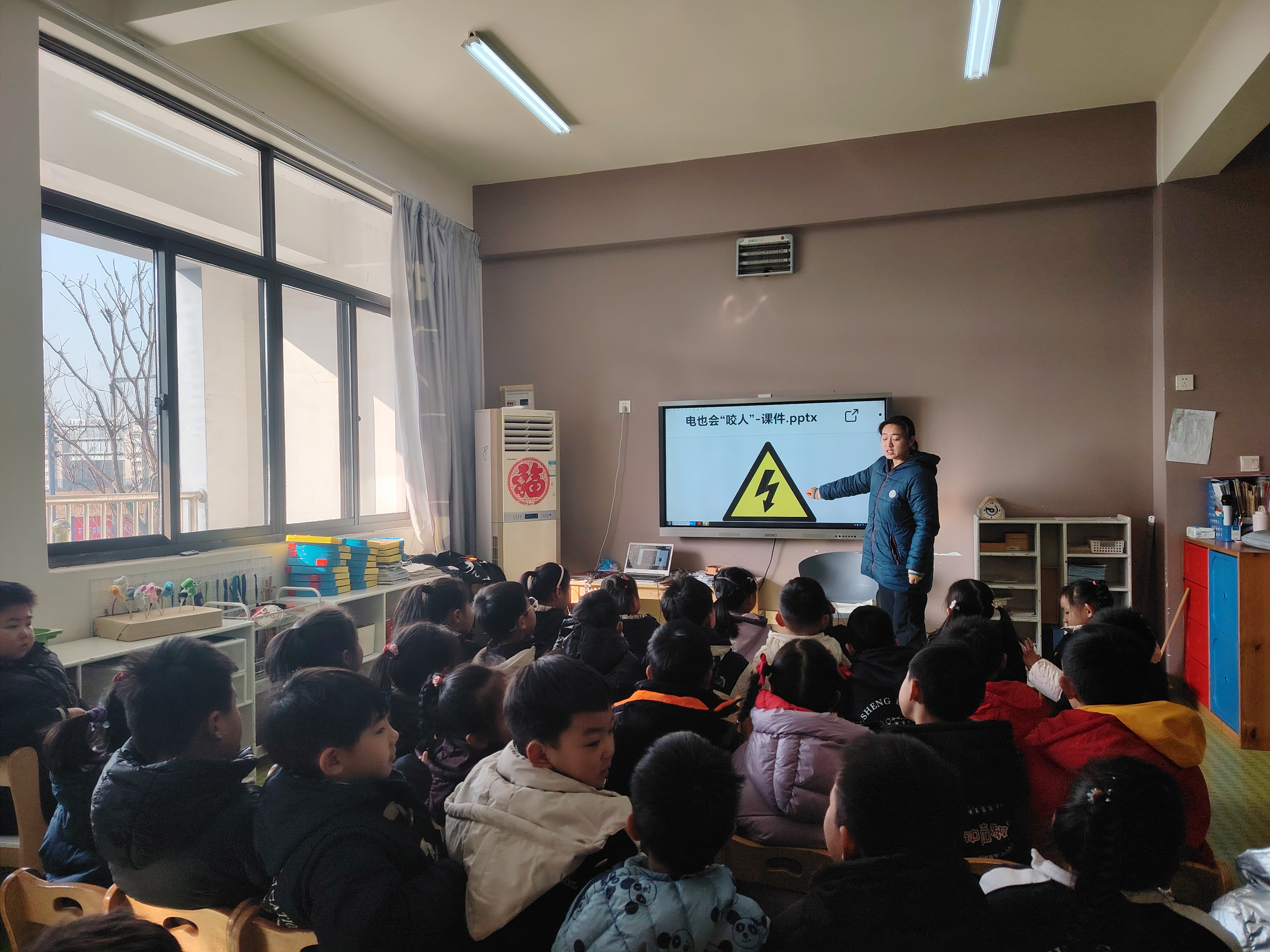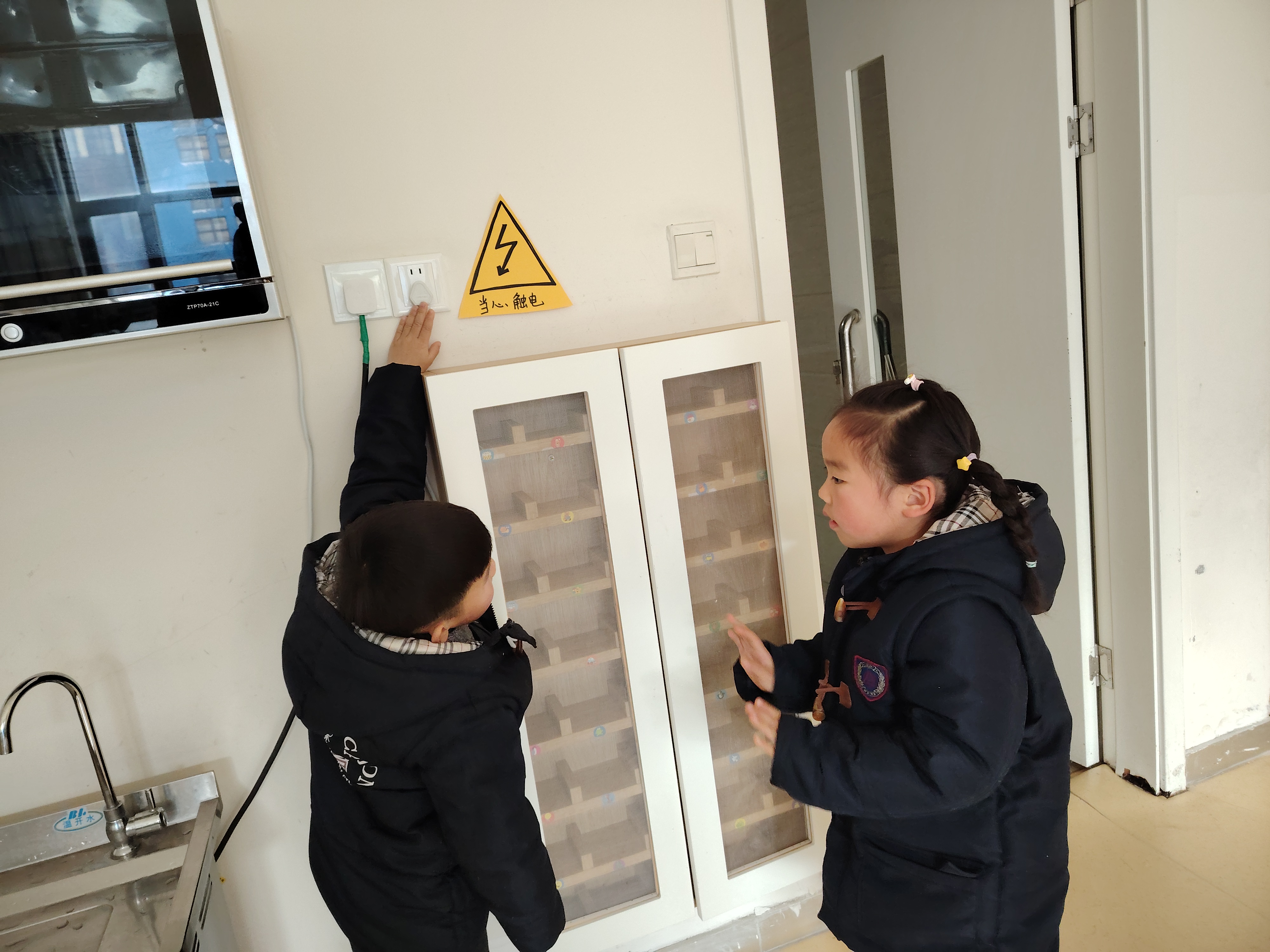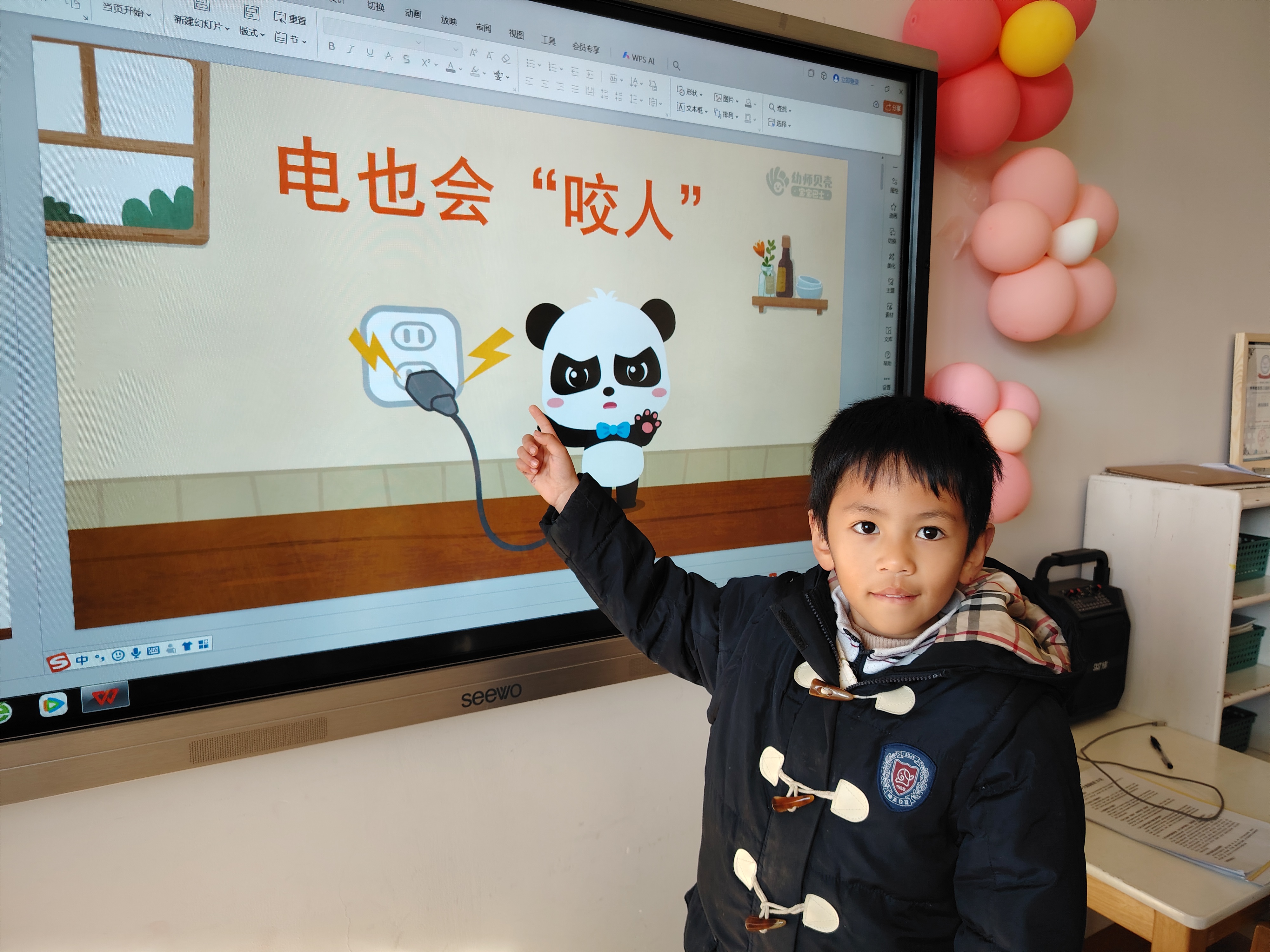 老师还展示了“当心触电”的小标志,小朋友们拿着“当心触电”的标志贴在用电危险的地方,这样就能告知其他小朋友要远离它,保护自己不受伤害。