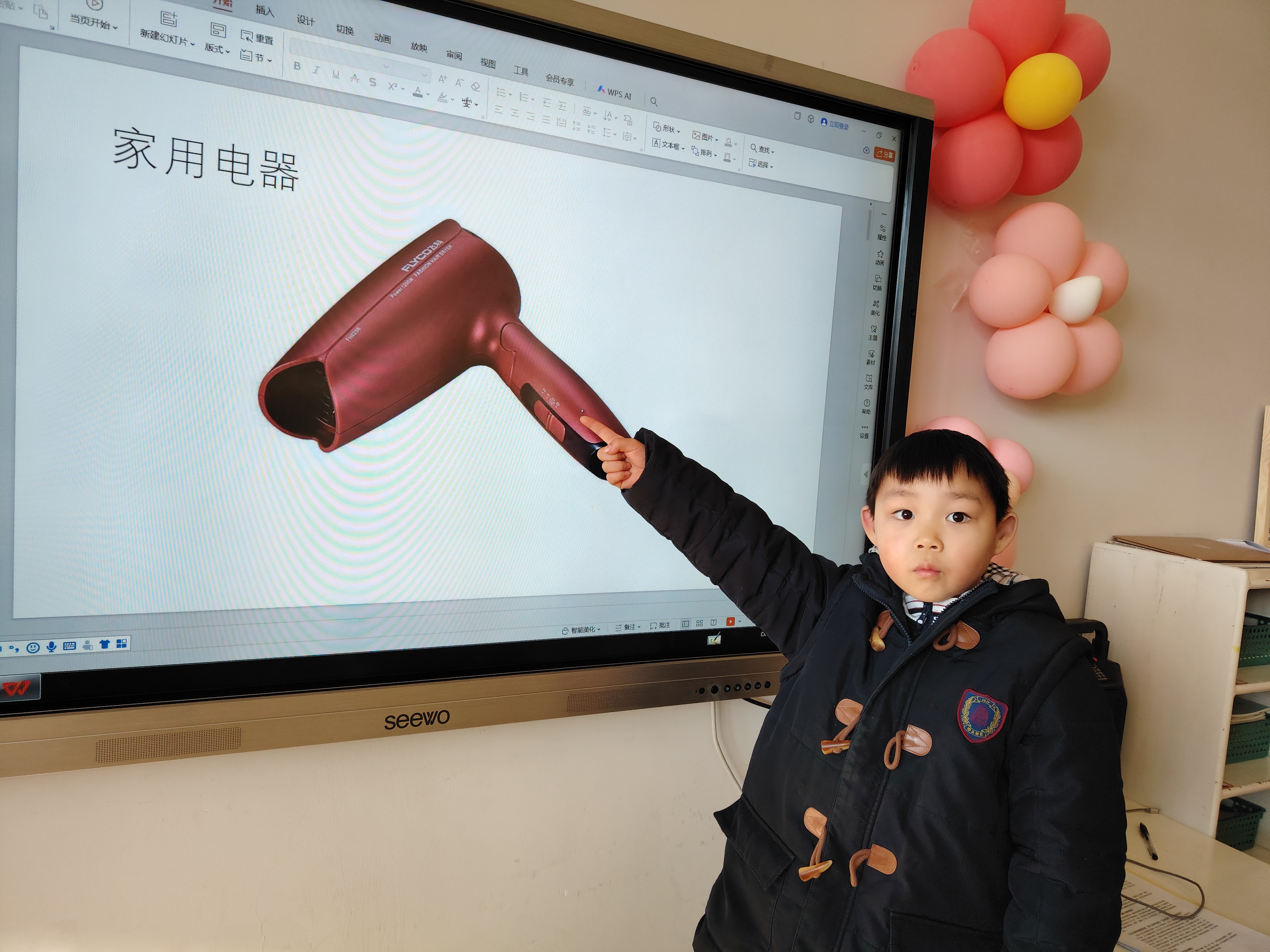 老师拿着各种电器模型,亲切地说:“看,这是我们的电器朋友,它们帮我们做了好多事情哦!”小朋友们好奇地看着,老师又接着说:“但是呀,我们不能随便拔电器的插头,那样会很危险的。”小朋友们听得特别认真。还指出学校里有哪些物品是有电的不能碰。