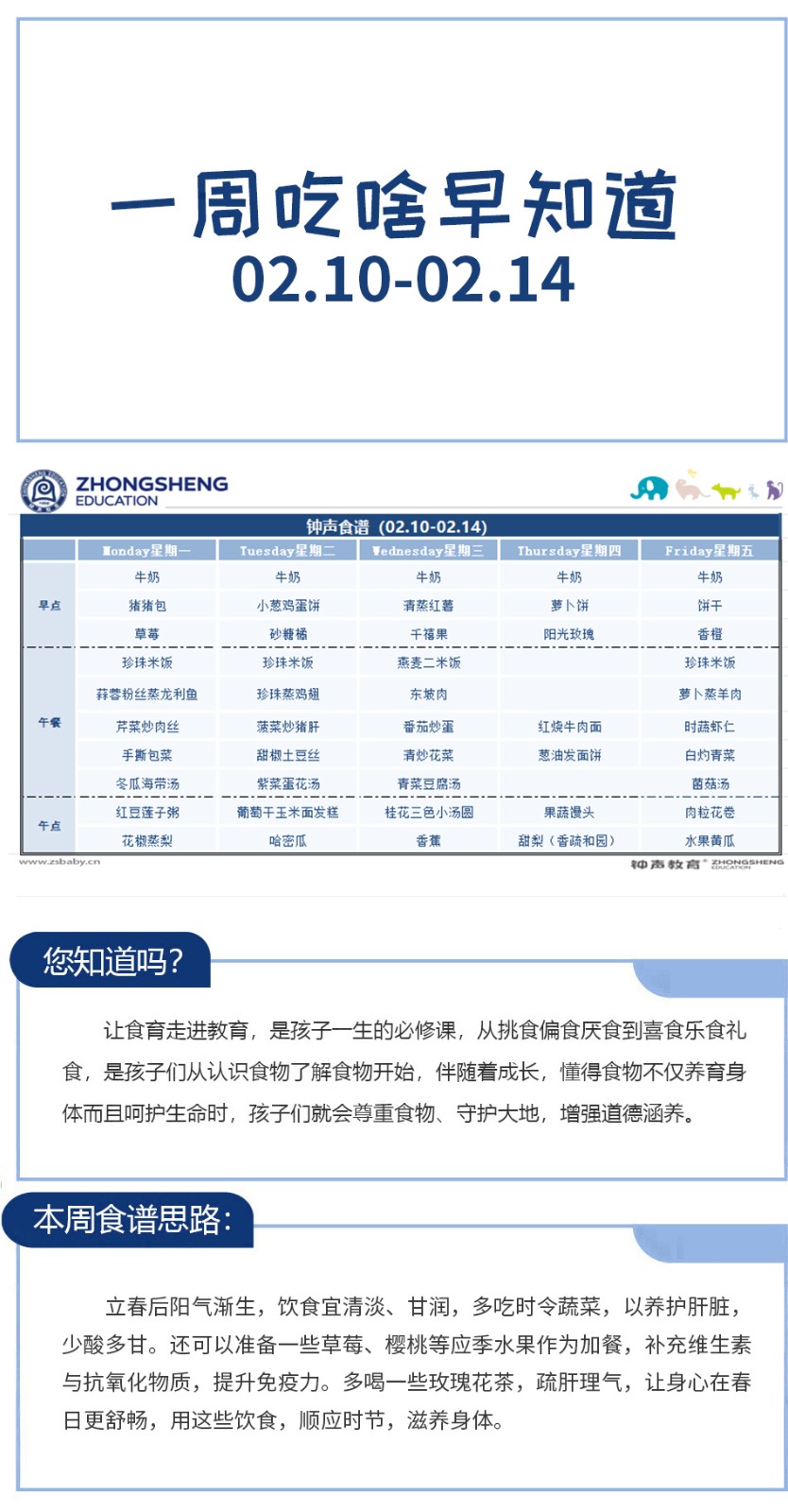 一周吃啥早知道 | 钟声红色幼儿园食谱分享