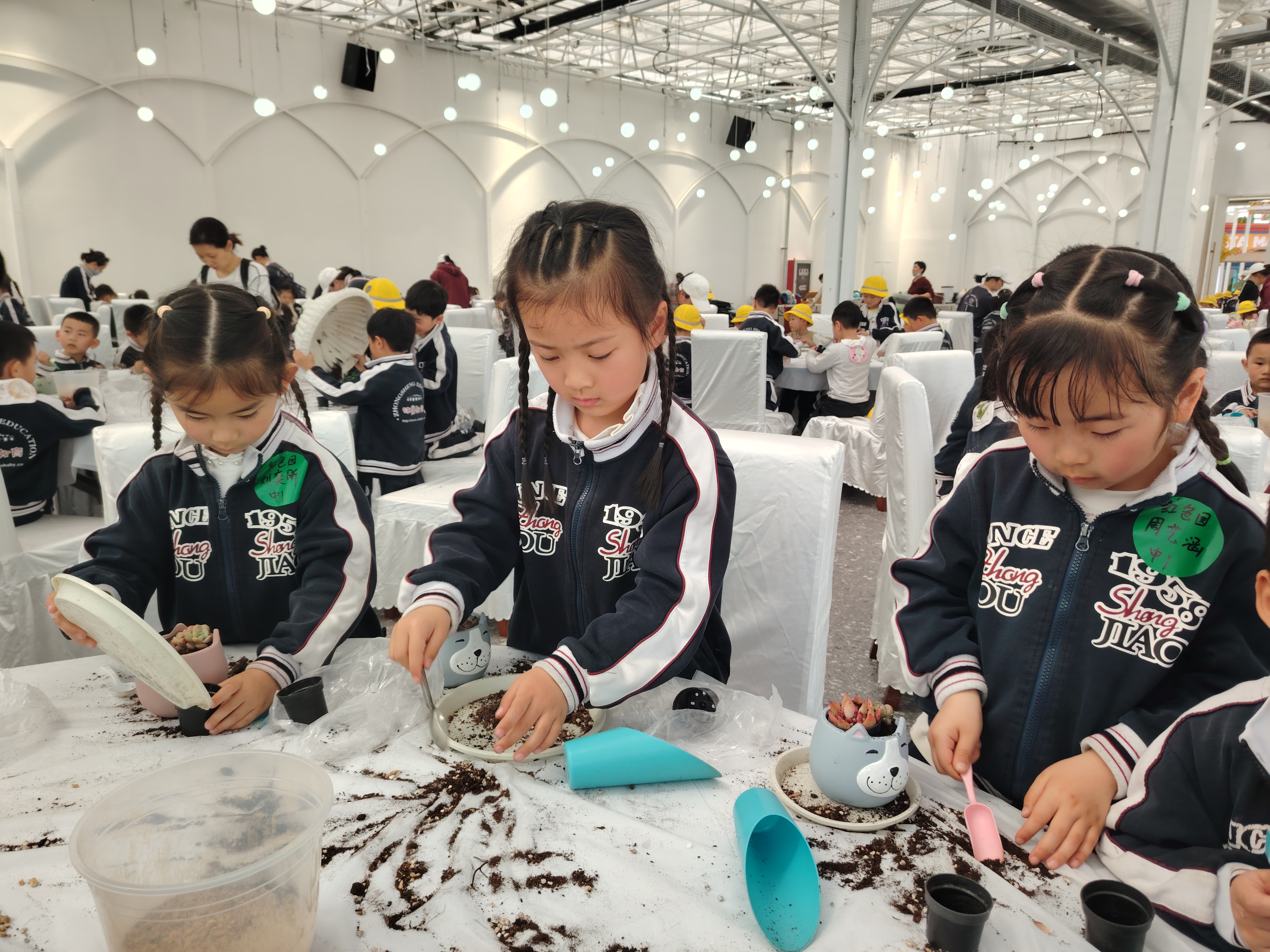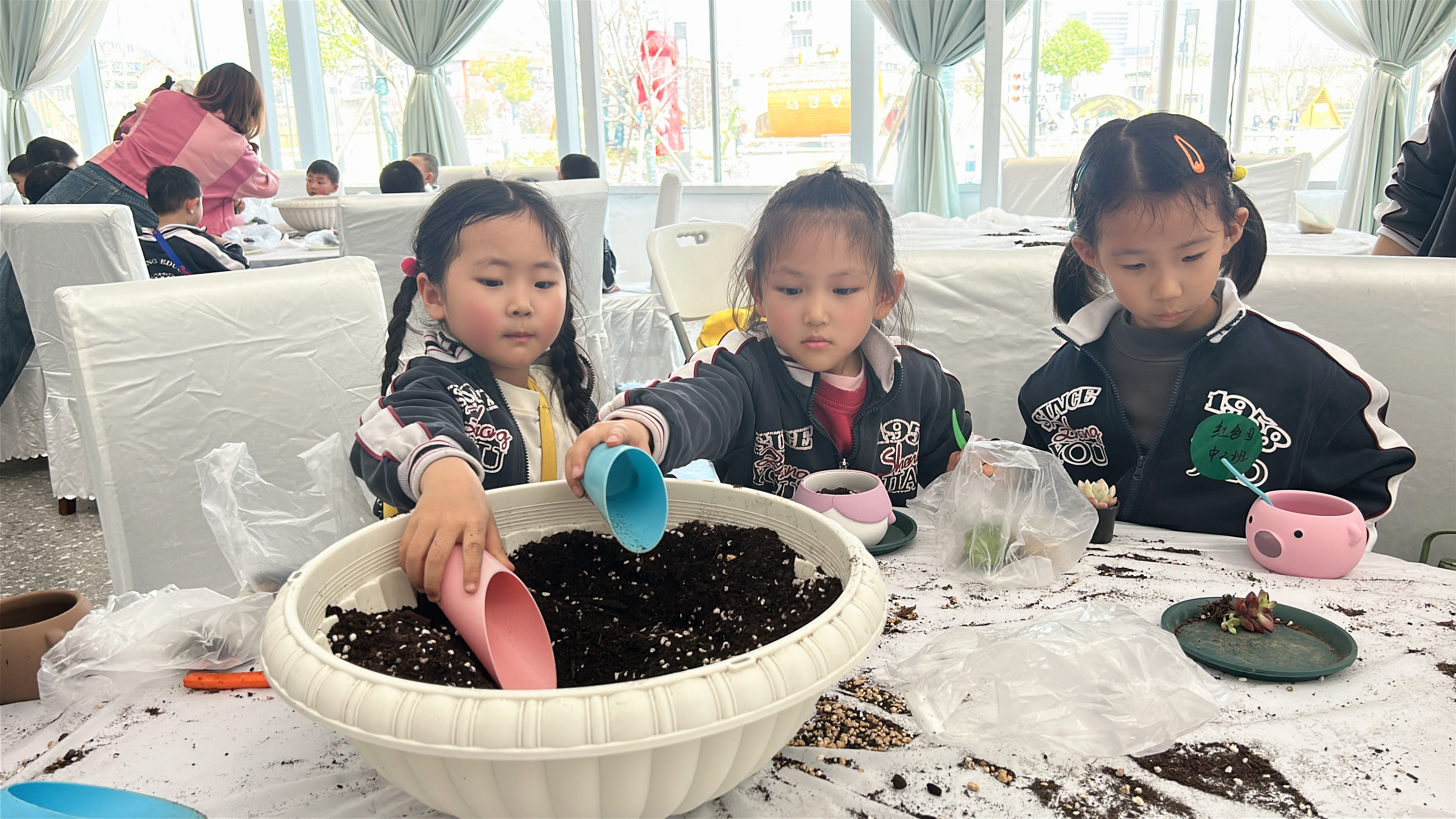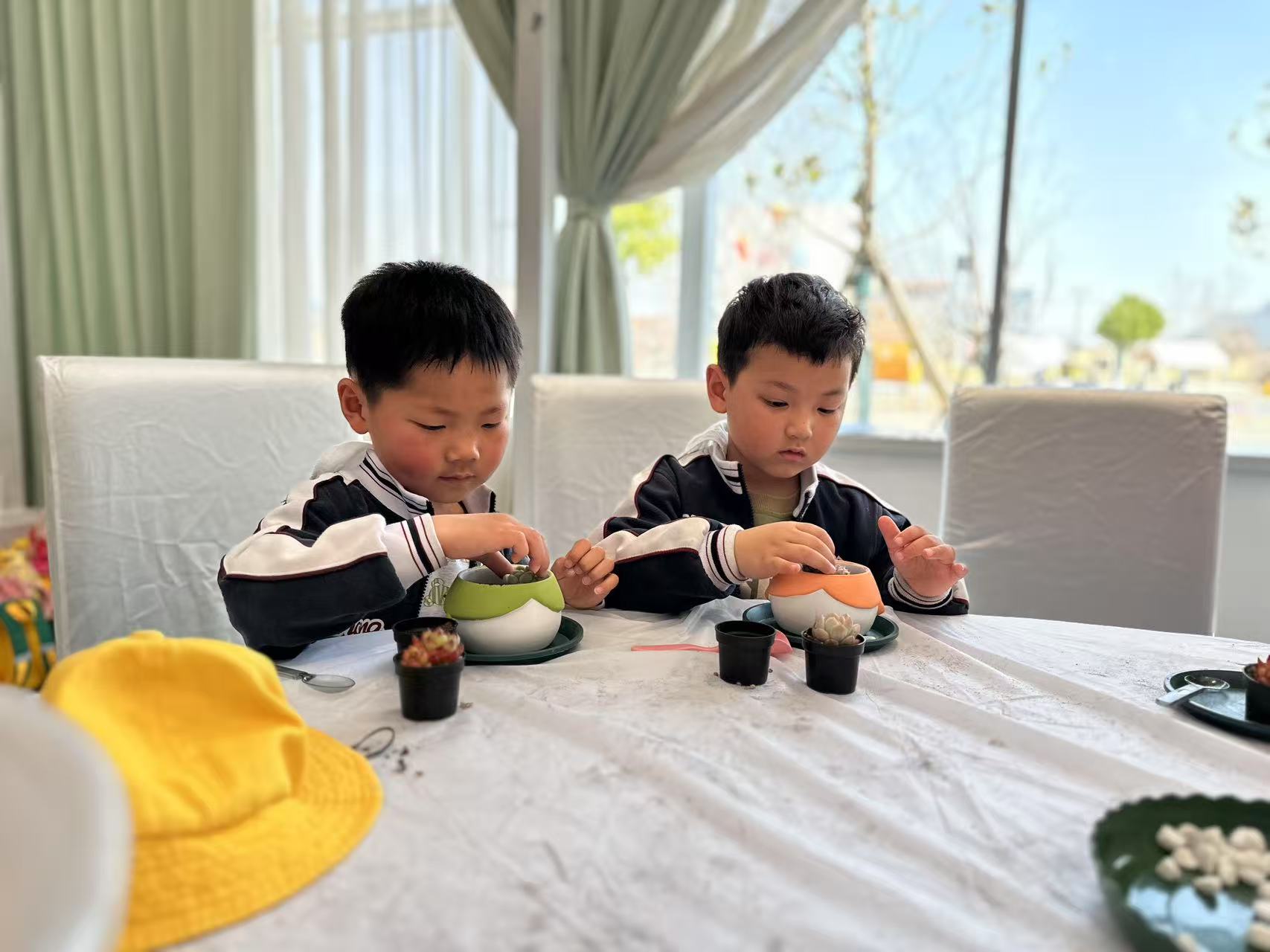 中班萌娃刚踏入塔塔农场,小羊 “咩咩” 的叫声、小兔子灵动的身影,瞬间勾起他们的好奇心。大家迫不及待拿起饲料,有的孩子略带紧张,手微微颤抖;有的孩子则兴奋地呼喊。制作多肉盆栽时,他们化身 “园艺小能手”,精心挑选花盆,一勺勺填土,轻轻栽苗,再铺上彩色石子。