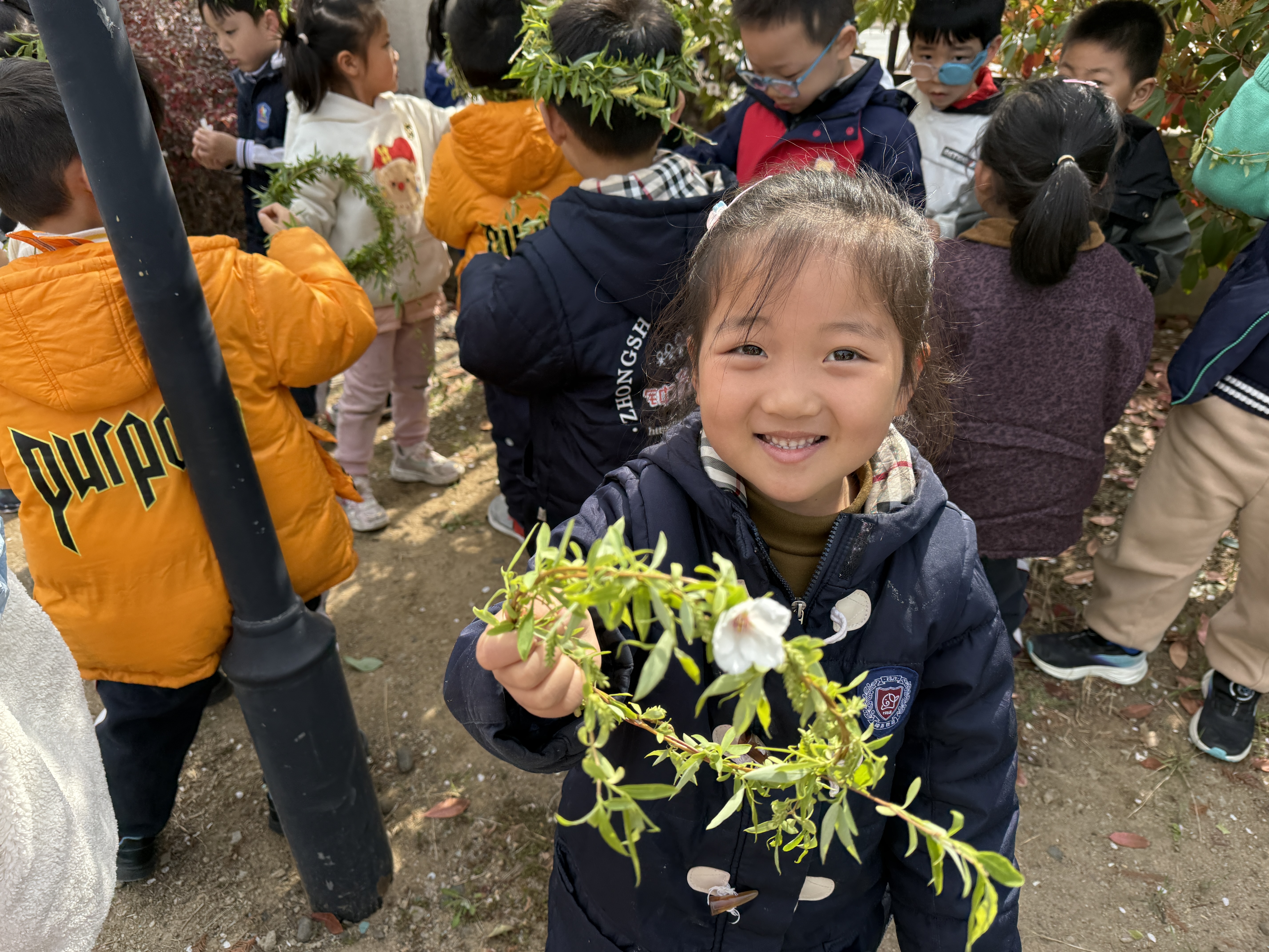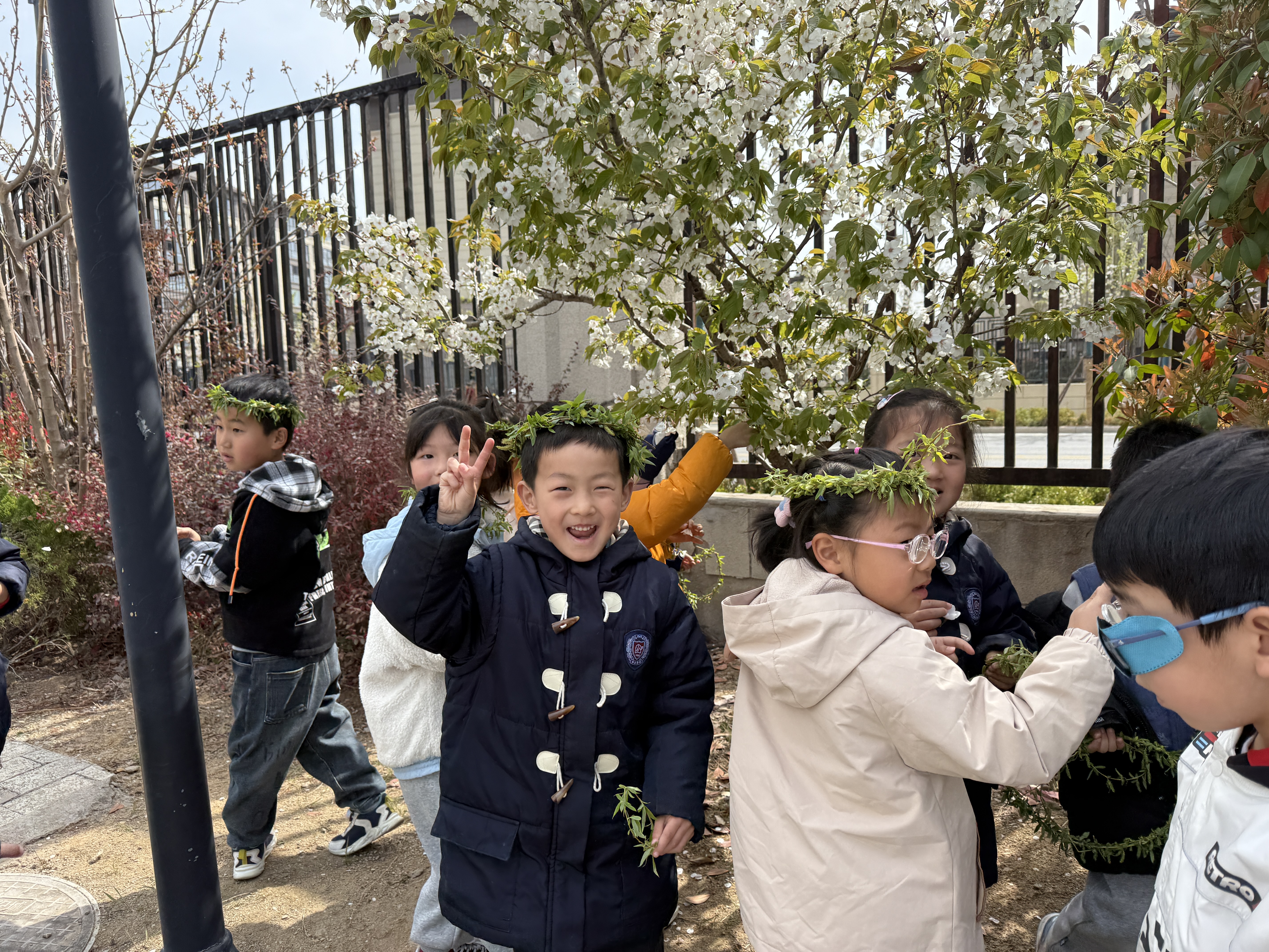 到了户外,孩子们像欢快的小鸟。柳枝编环戴在头上,小花握在手中,在草地上嬉笑撒欢,拥抱温柔春风,把清明的诗意与美好全收进童年口袋。