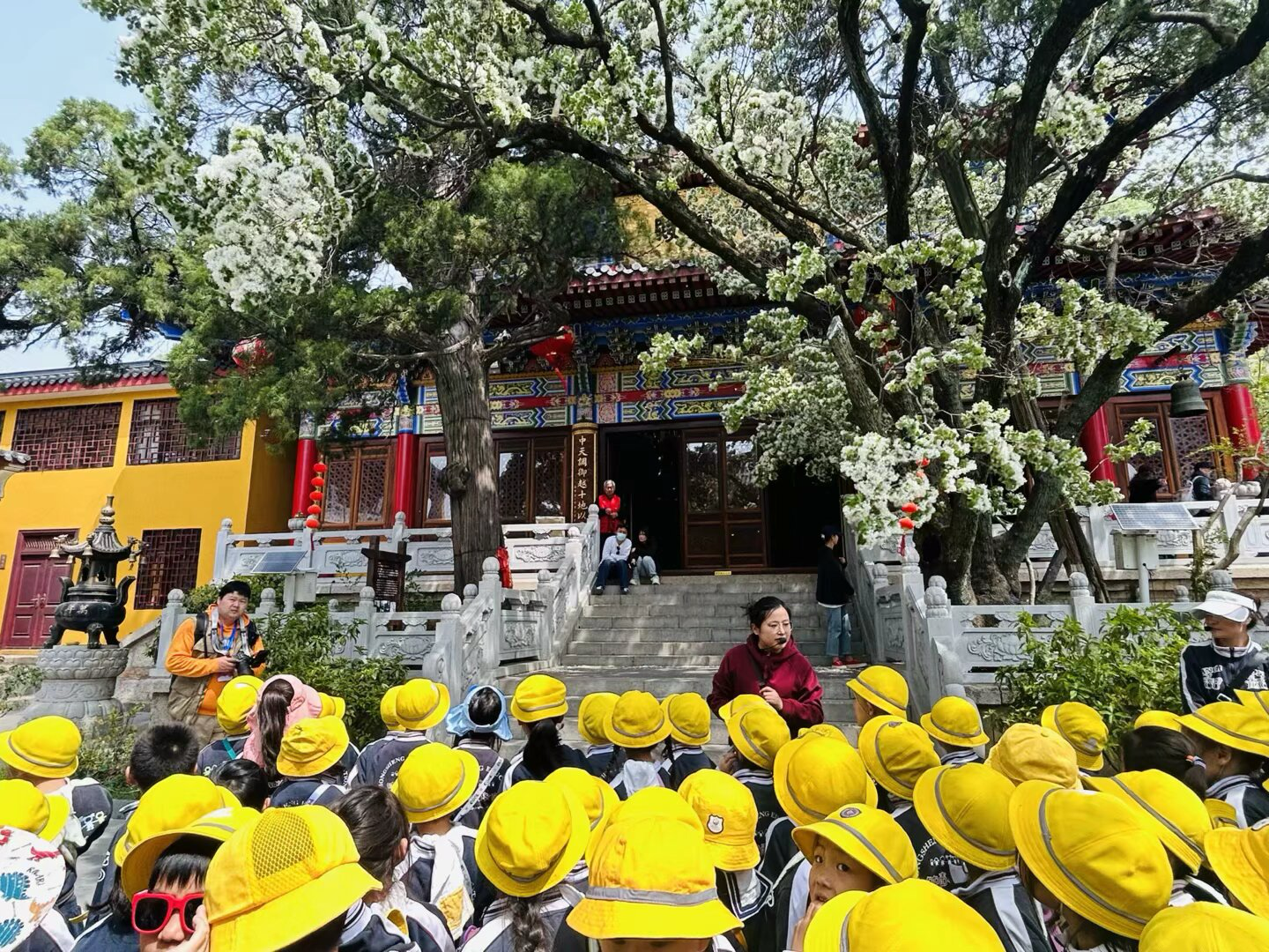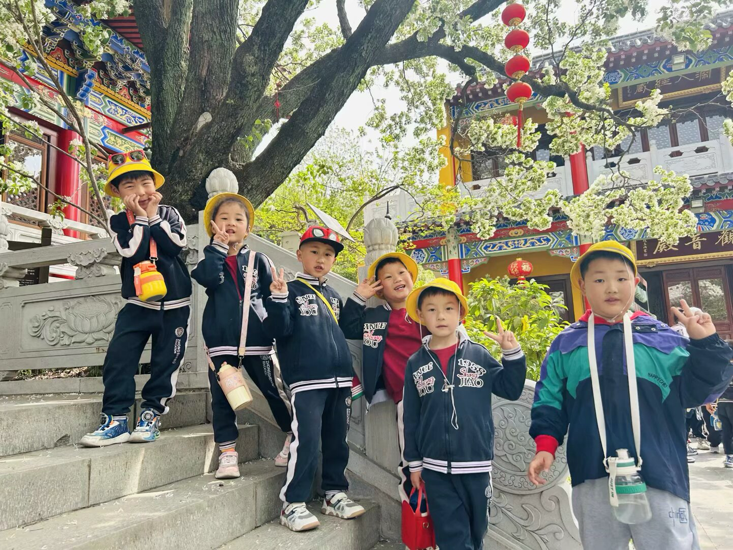 小朋友们头戴小黄帽,排着整齐的队伍,眼中满是好奇与兴奋。在讲解员的带领下,大家先是参观了充满文化气息的场馆。墙上的历史故事、名人典故,仿佛一幅幅鲜活的画卷在孩子们眼前展开,他们认真倾听,不时发出惊叹,在心中种下了求知的种子。走出场馆,大自然的美景又让孩子们陶醉。古老的建筑在绿树繁花的映衬下更显神秘,孩子们在草地上嬉笑玩耍,感受着春风的轻抚,体会着与伙伴们一同探索的快乐。