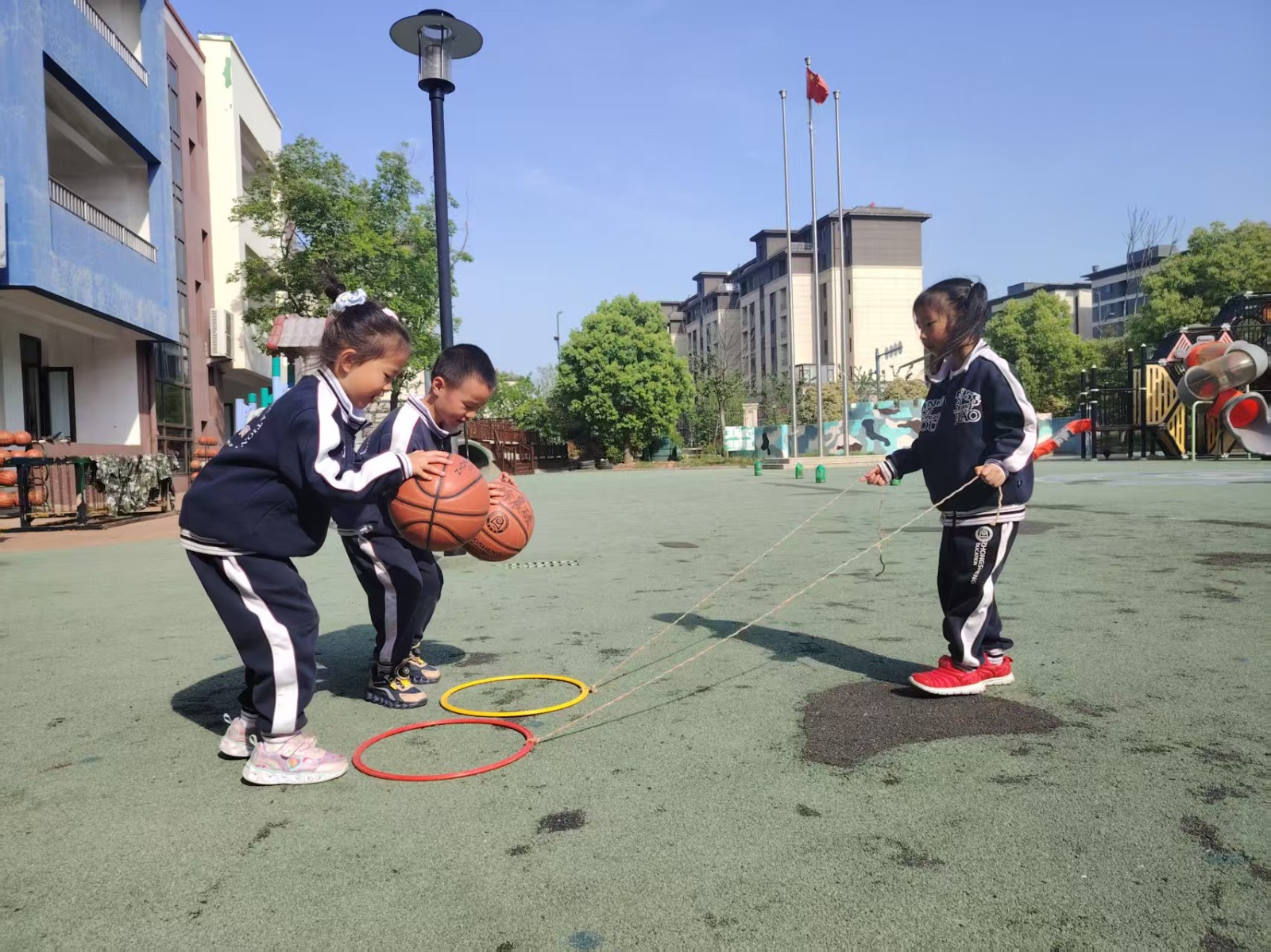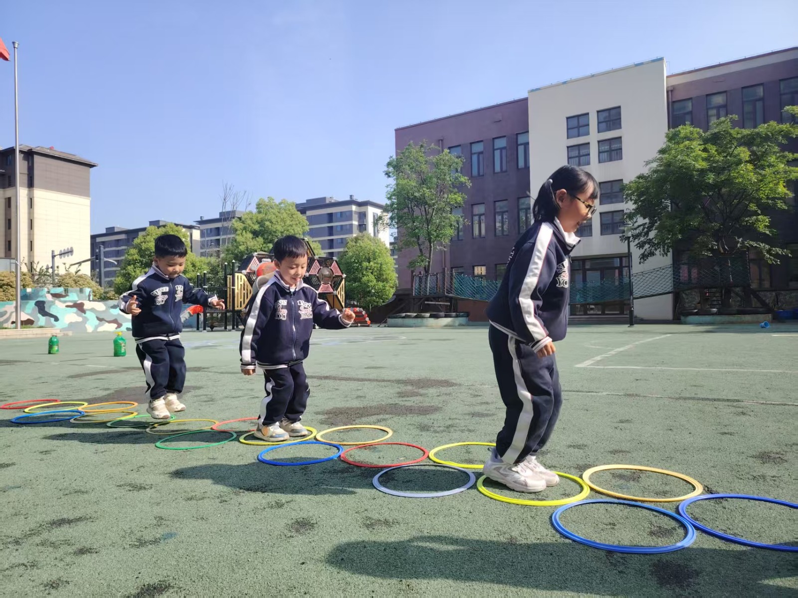 在探索和实践中,体能圈不仅丰富了孩子们的体育活动,还促进了他们的身体发展和创造力。通过多种玩法的尝试,孩子们在玩乐中学习到了身体的协调运动,增强了体能,并享受到了体育活动的乐趣。