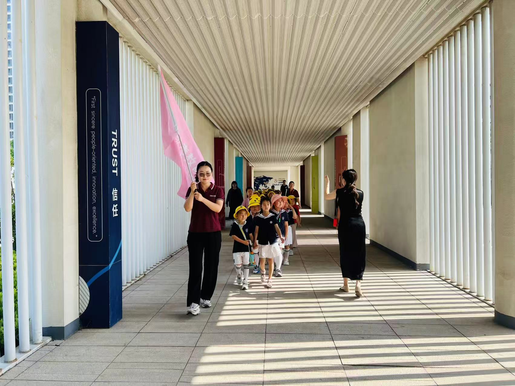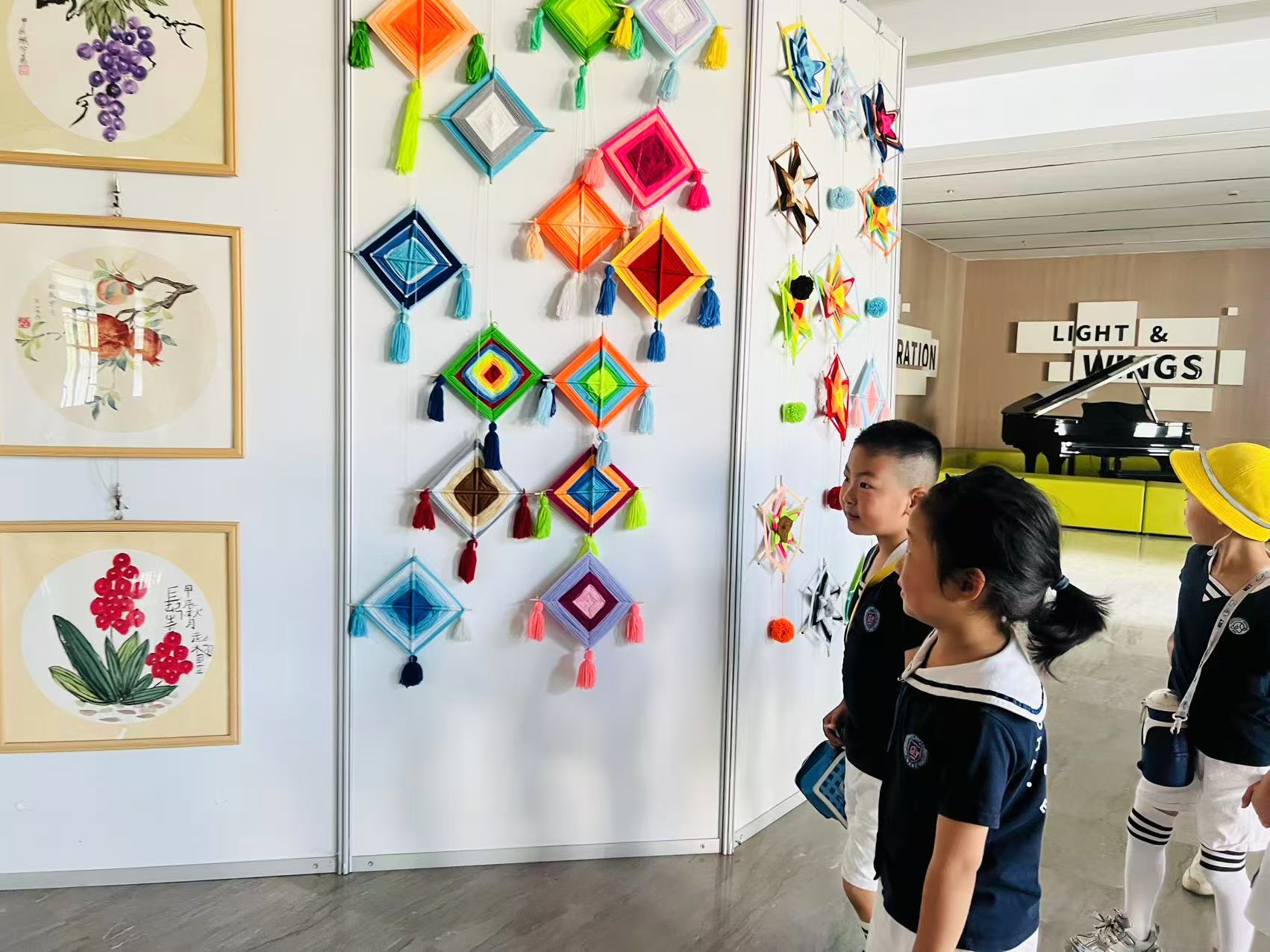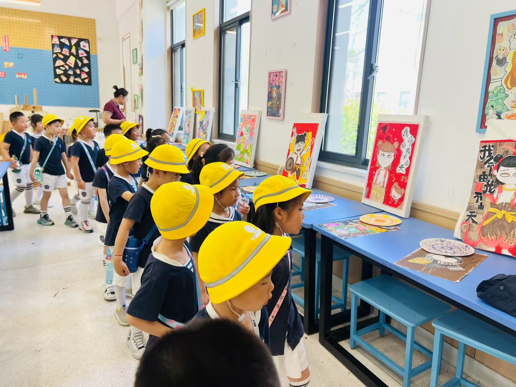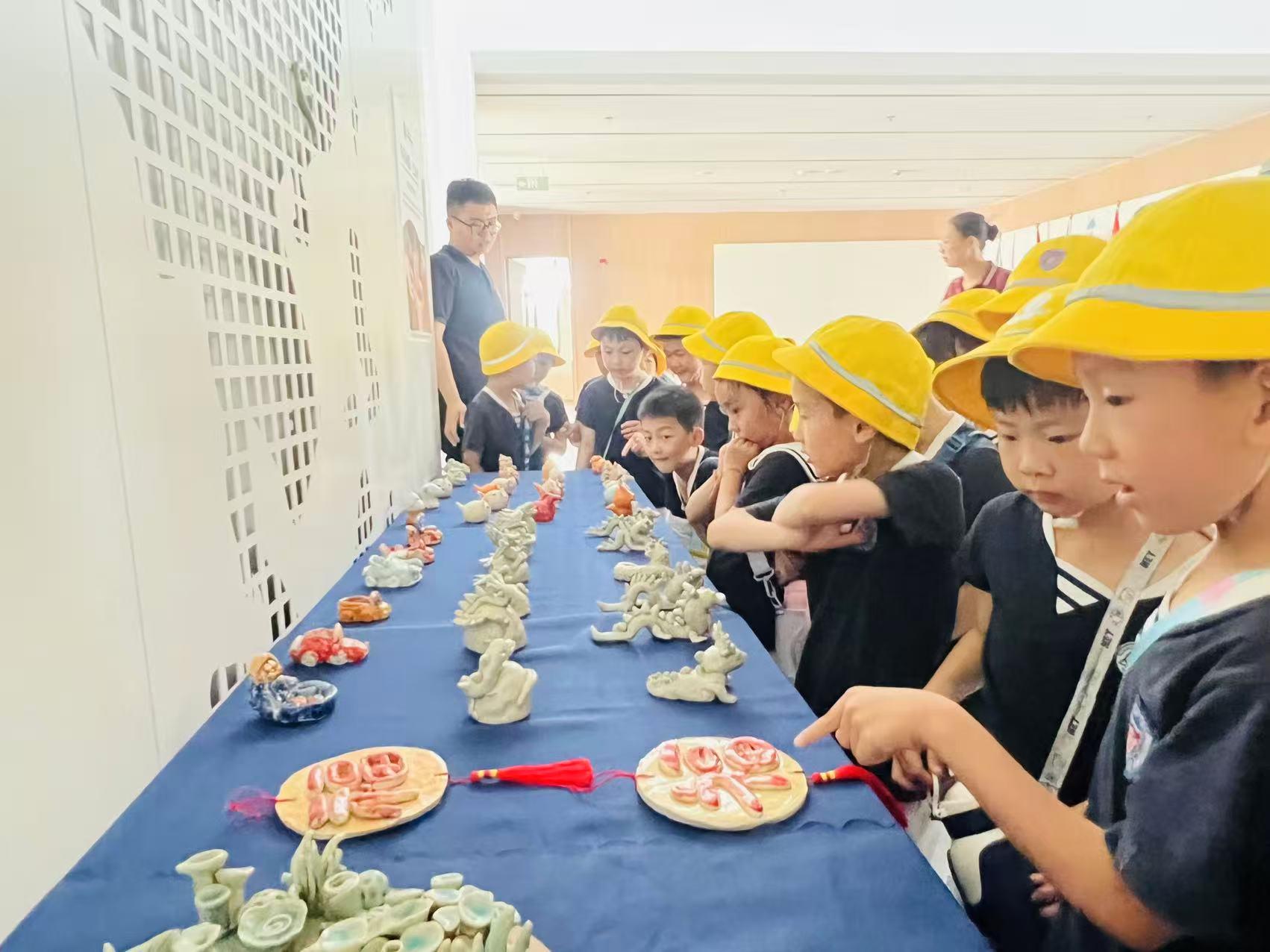 大班小朋友们踏入融盛双语学校,眼睛瞬间被多彩的校园吸引。在艺术展区,精美的画作、编织品让大家驻足惊叹;参观陶艺室时,形态各异的陶艺作品,更是像在诉说奇妙故事,孩子们好奇地这儿瞅瞅、那儿看看,满是兴奋 。