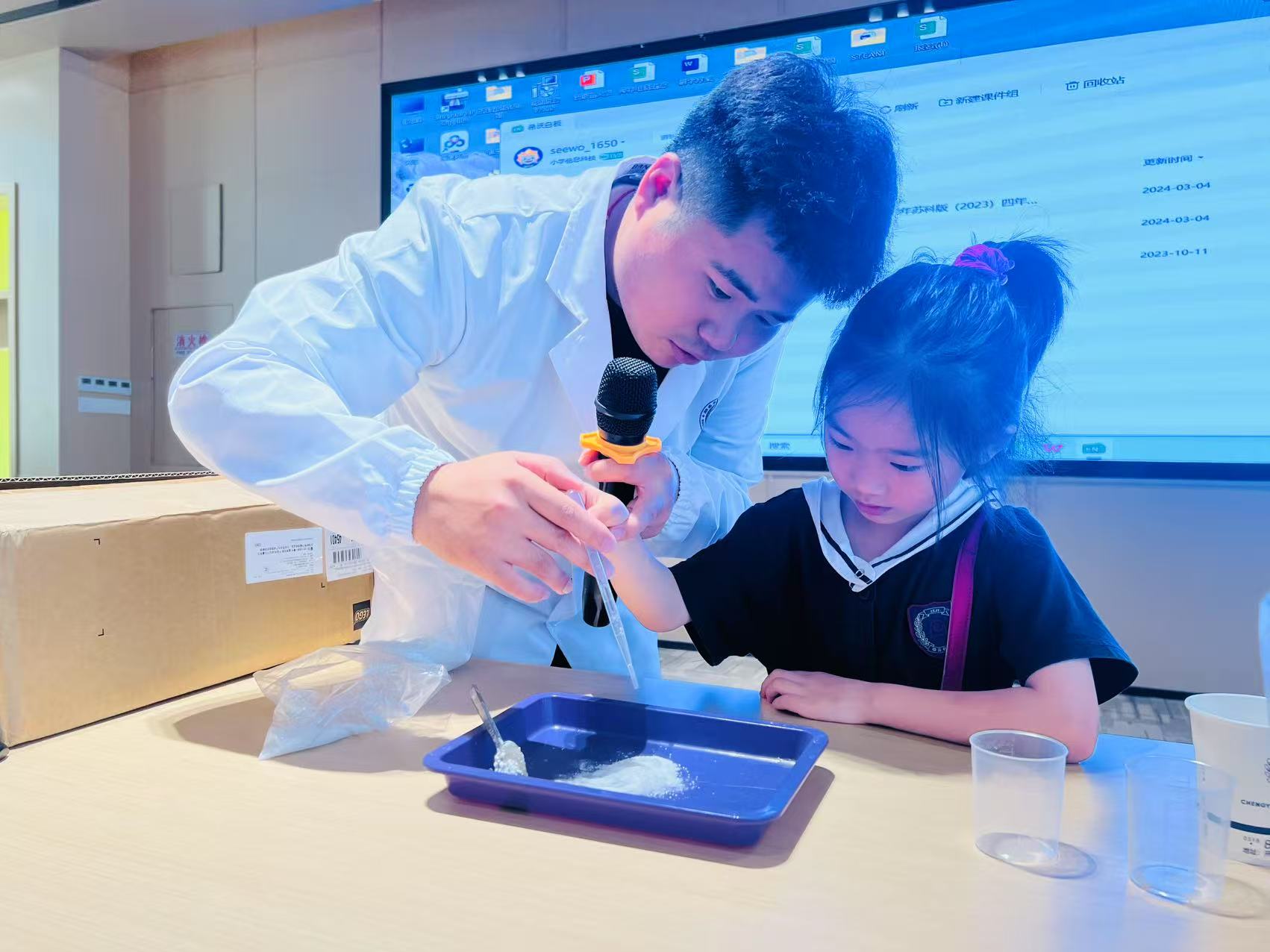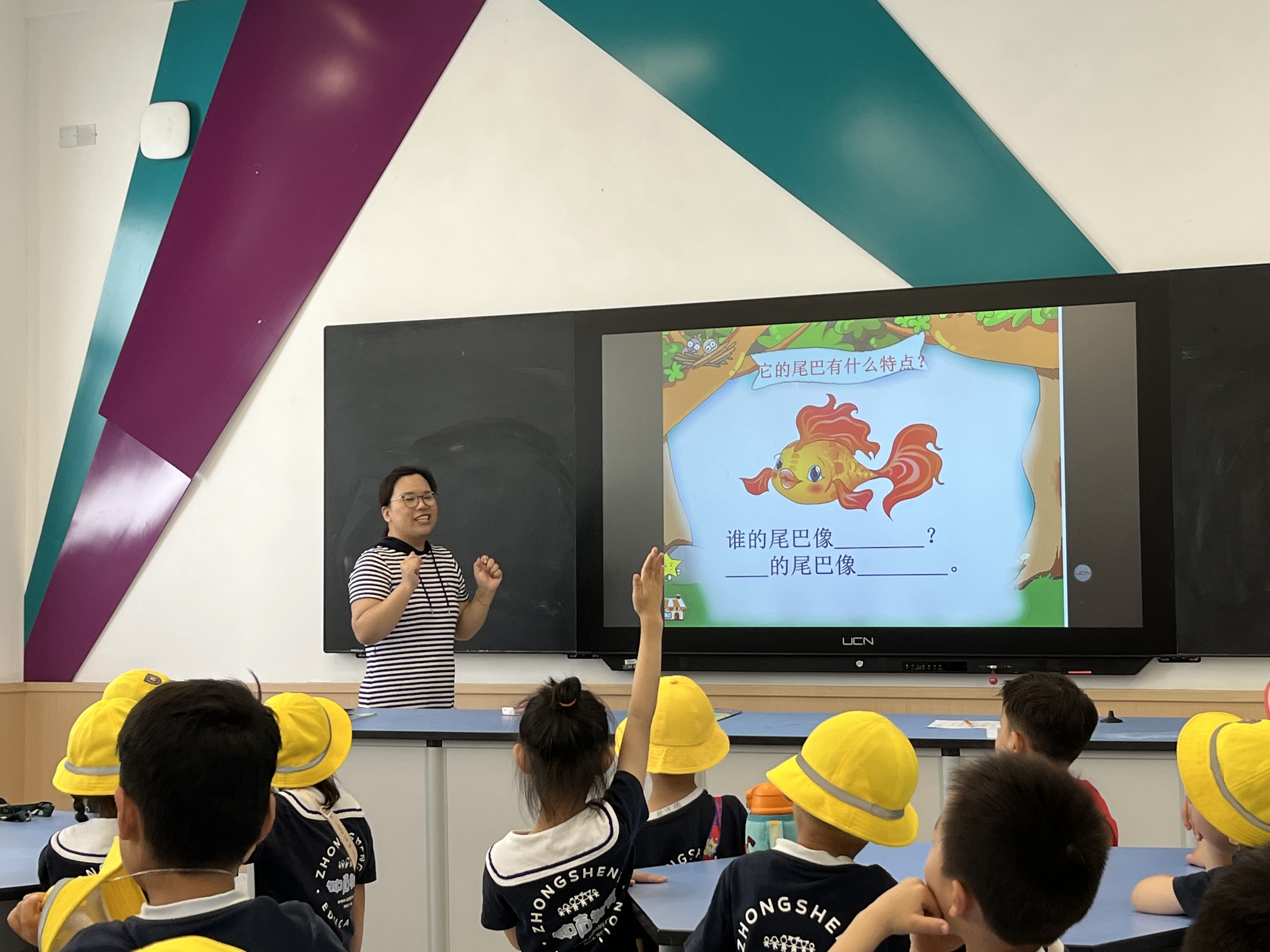 当小朋友们走进明亮的教室,老师正借助生动有趣的课件,讲解着好玩的知识。小家伙们立刻坐得笔直,小眼神紧紧盯着屏幕,还积极举手,争抢着发言。到了科学实验区,在老师耐心指导下,大家动手操作小实验,看着试剂混合后奇妙的变化,眼神里满是好奇与惊喜,真切感受到课堂的独特魅力,心底那团求知的小火苗,被稳稳点燃 。