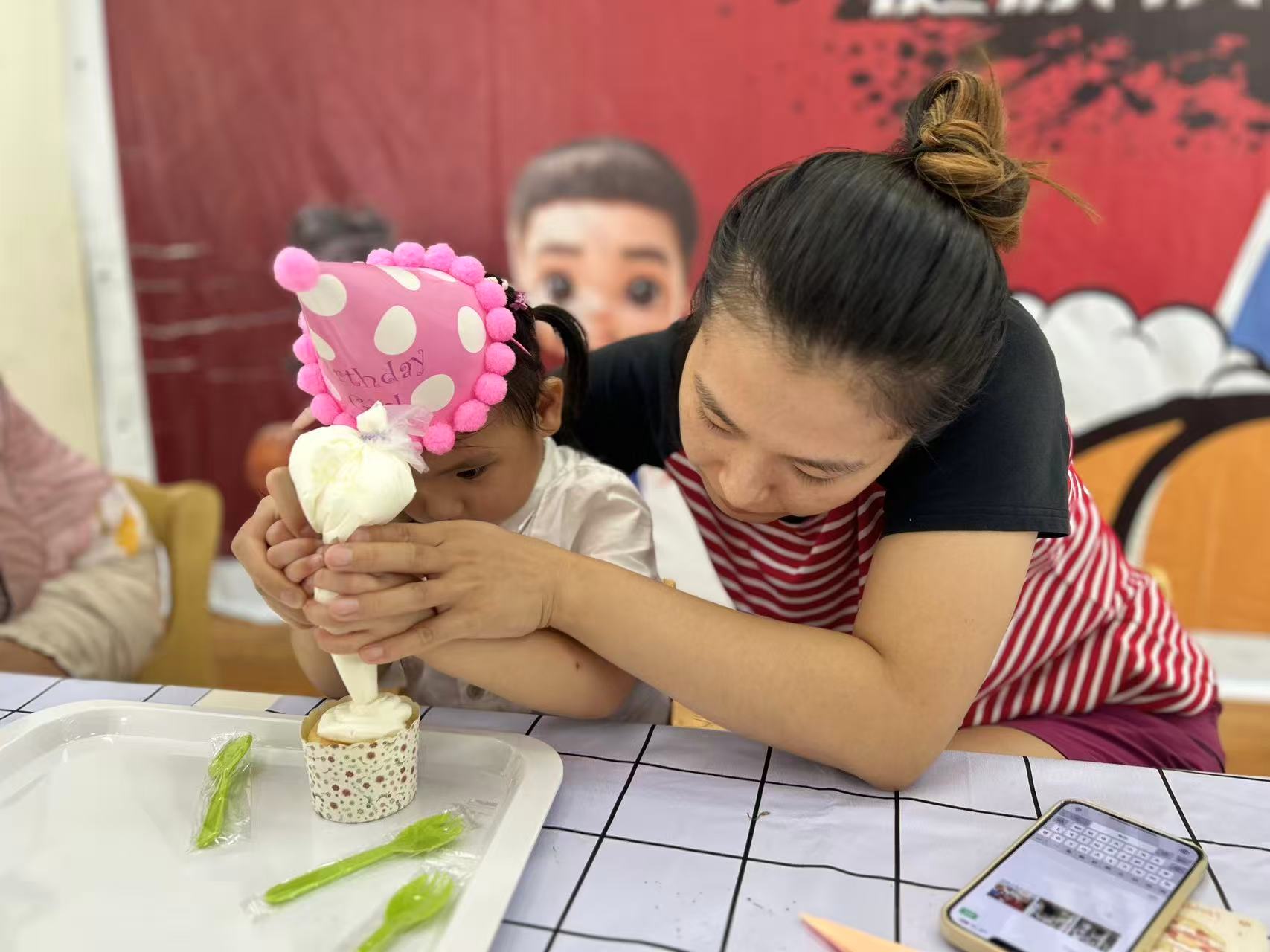 家长与幼儿一同制作蛋糕的环节,充满了甜蜜的气息。奶油的香甜,在大家的巧手下,变成了一个个美味又好看的蛋糕。孩子们迫不及待地品尝着自己参与制作的蛋糕,那满足的小表情,可爱极了。