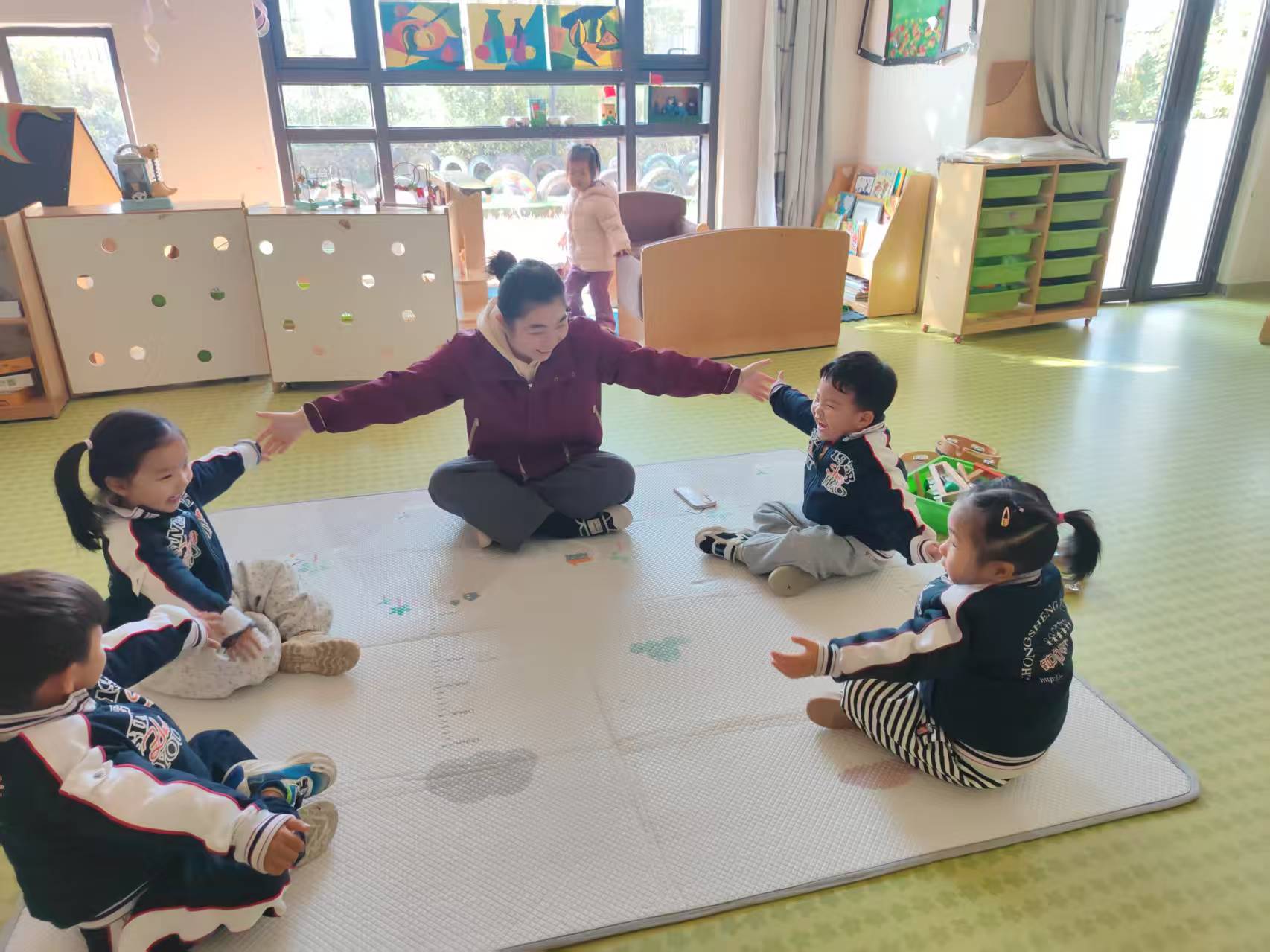 1、请宝宝找一个自己喜欢的位置坐下,小手放在膝盖上,背挺直,老师向宝宝问好,老师说“手起”时,请宝宝把小手像老师一样端平,“手起”问好:宝宝好。