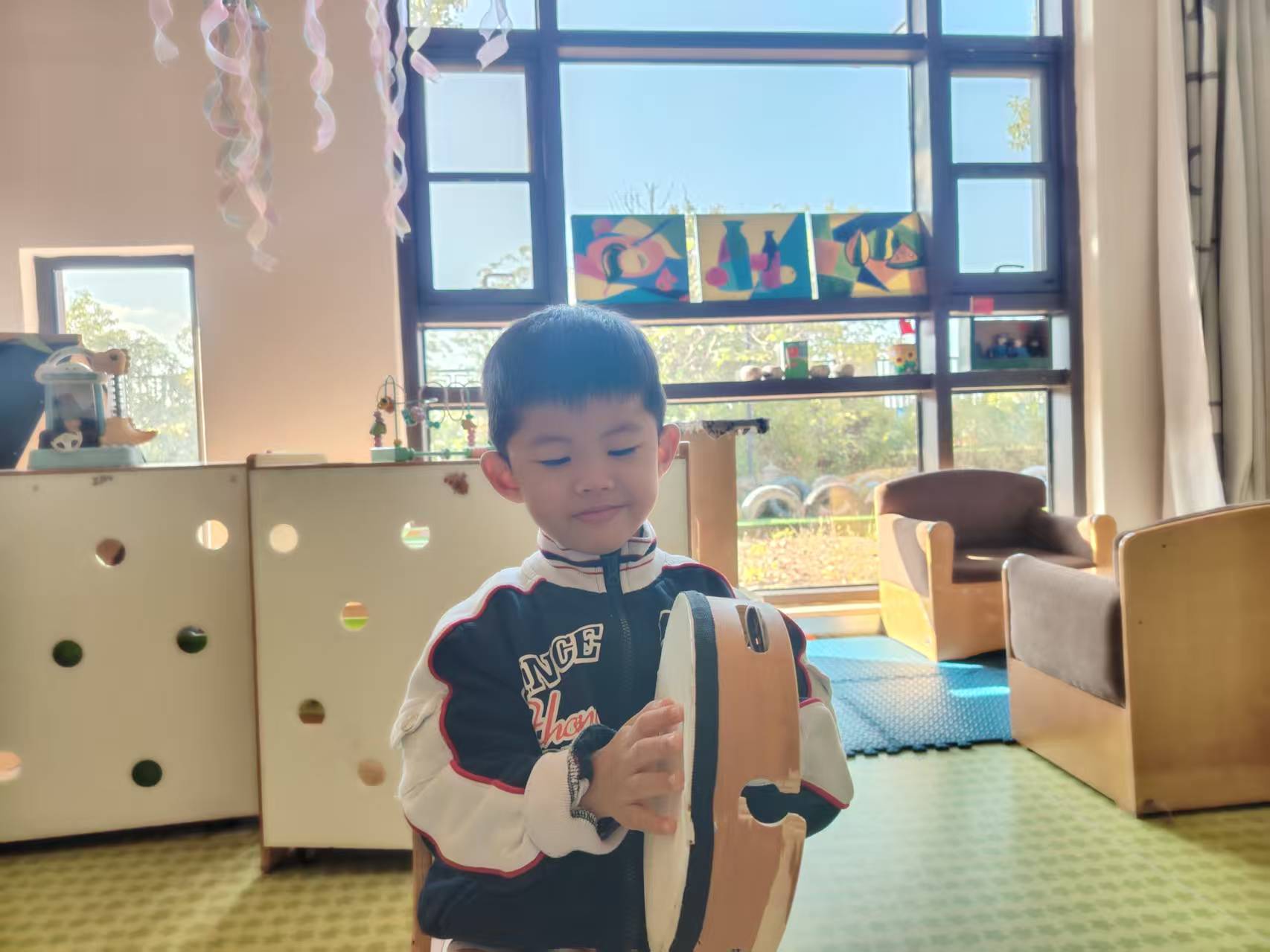 4、宝宝分别用三样乐器演奏,教师提供三角板,响板,手鼓。