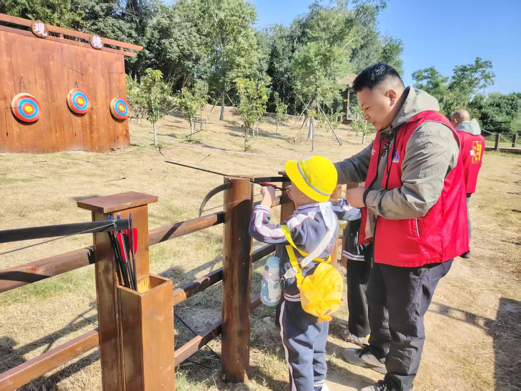 青山当背景,宝贝们的小身影成了秋天最灵动的点缀。蹦床追球、挖土“寻宝”、拉弓瞄准,小探险家忙得不亦乐乎。