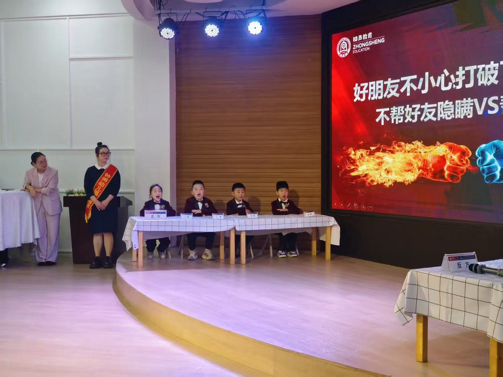 领结蹭着小下巴,小手攥紧话筒——当镜头对准钟声幼儿园的辩论台,这群萌娃的眼神里,藏着超出年龄的认真。他们正在为“好朋友打破东西,要不要帮忙隐瞒”这件事,争得眼睛发亮。
