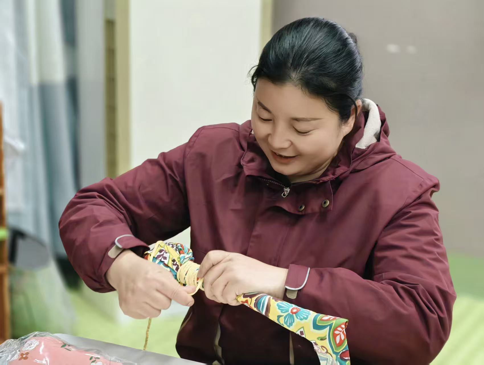 总说自己是“园丁”,其实更像抱着这团温柔织物的“缠绕者”——不催着线头快些成结,也不焦虑纹路是否规整,只是把“耐心”捻进指尖的褶皱、眼底的笑意,轻轻裹在每段笨拙的缠绕里。陪手生的宝贝慢慢绕好第一圈绳,听好奇的孩子追问“这块布料为什么有这么多花”,等他们按自己的步调摸着织物、爱上触感。知道每颗童心都需要慢慢铺展,所以愿意俯身调慢缠绕的节奏,耐心等小手找对布条的角度,直到某天,看见独一无二的作品,跟着笑容一起,轻轻漾开。