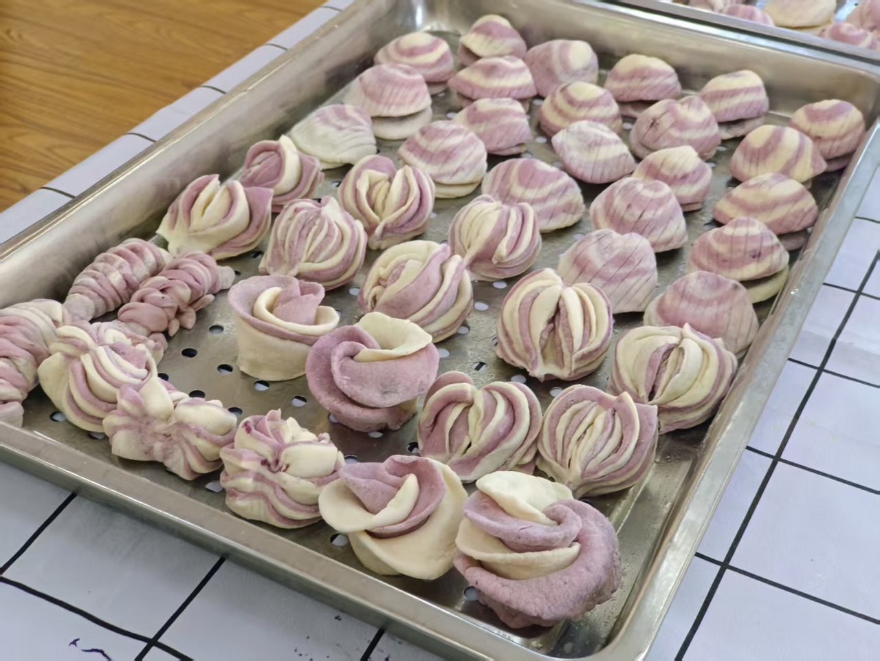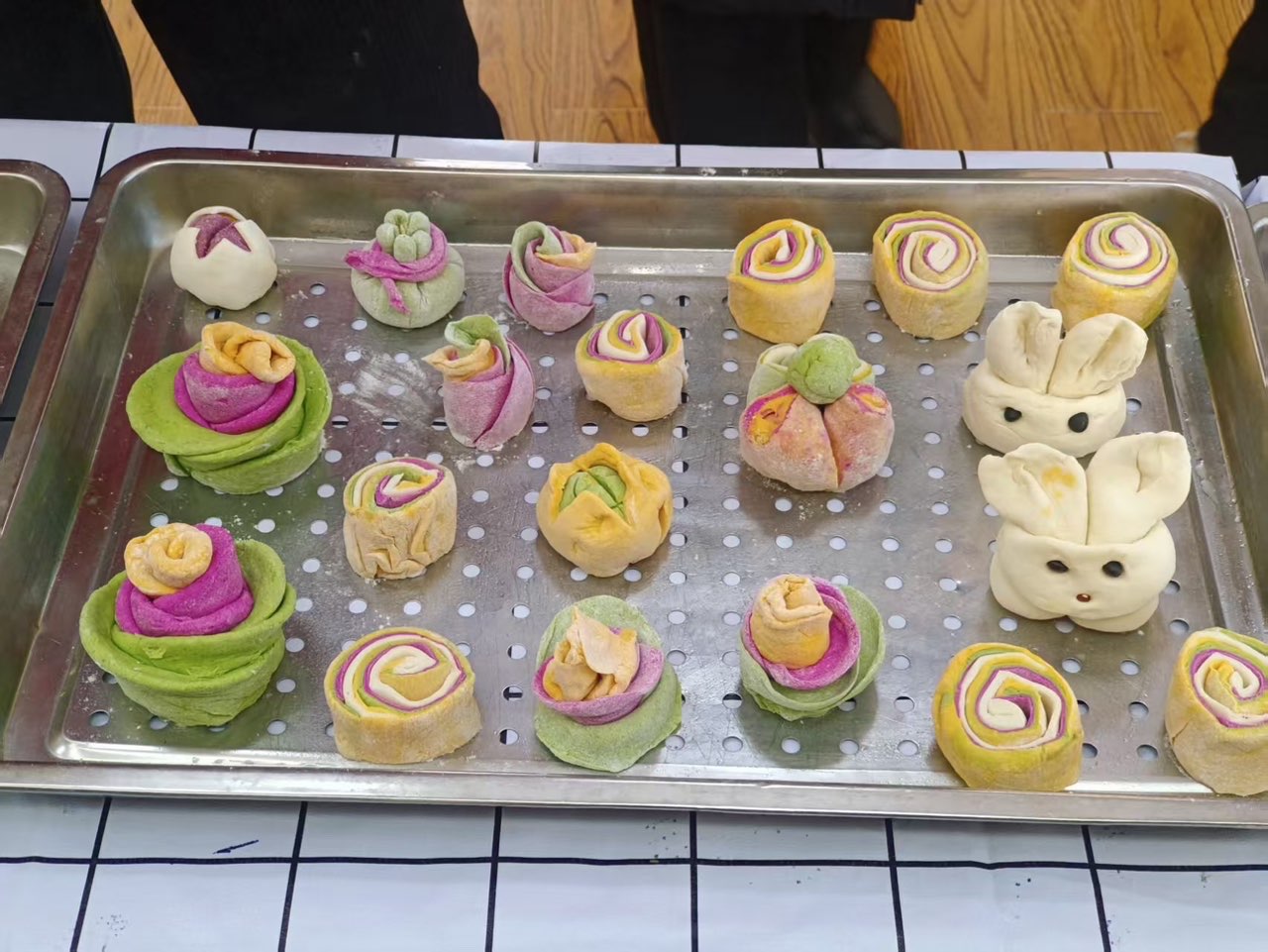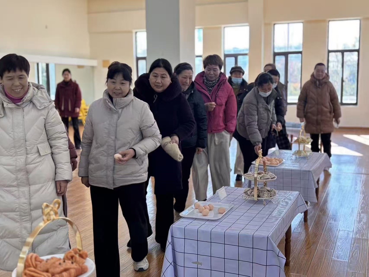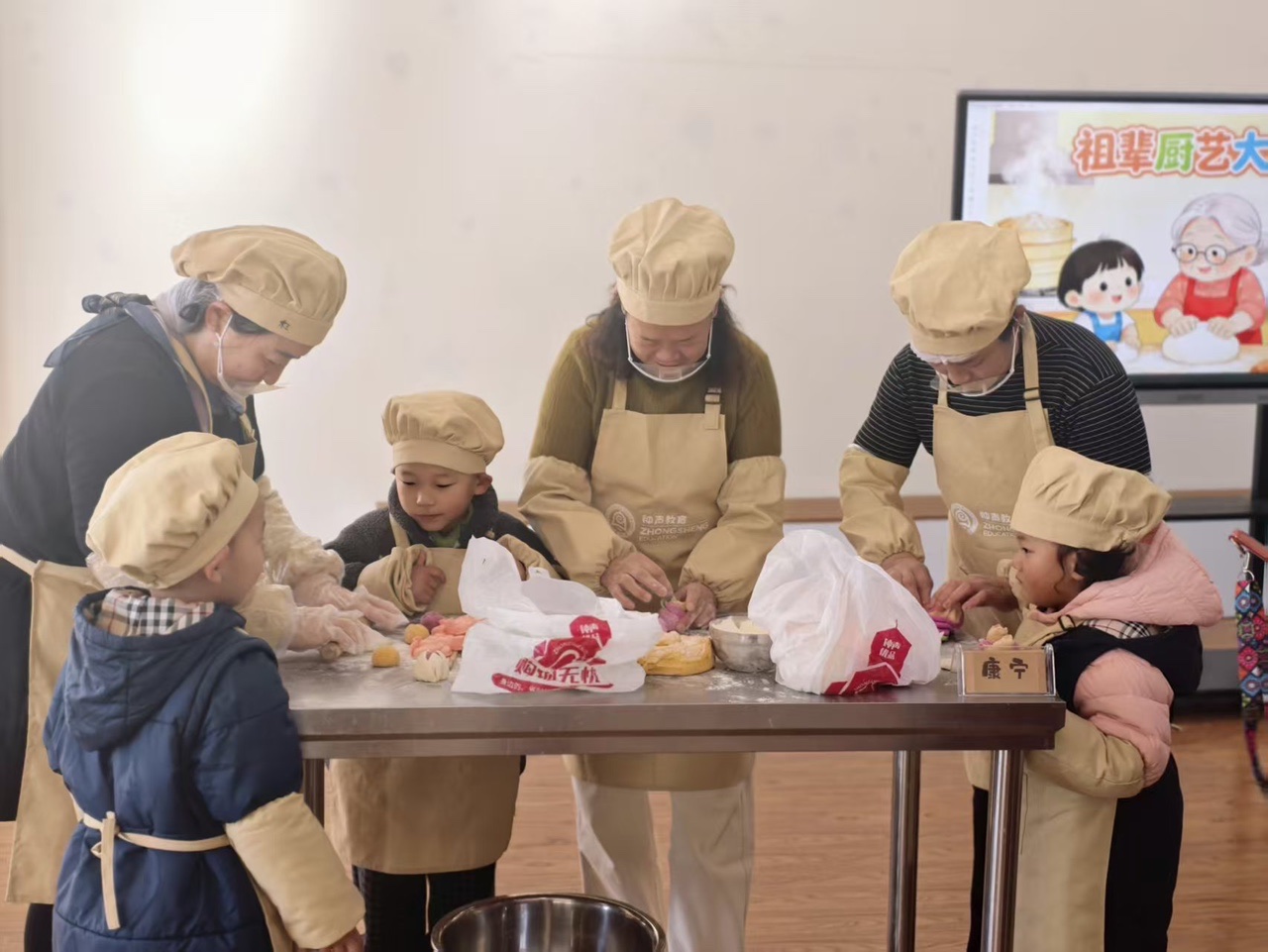 最令人期待的面点厨艺大比拼环节,成了奶奶们的专属秀场。和面、擀皮、捏造型,奶奶们个个身手不凡,一双双布满岁月痕迹的手,灵巧地将普通的面团变成了活灵活现的小白兔、娇艳欲滴的玫瑰花、圆滚滚的小元宝……孩子们围在操作台边,眼睛瞪得圆圆的,时不时递上一颗红枣,还奶声奶气地喊着“奶奶加油”。