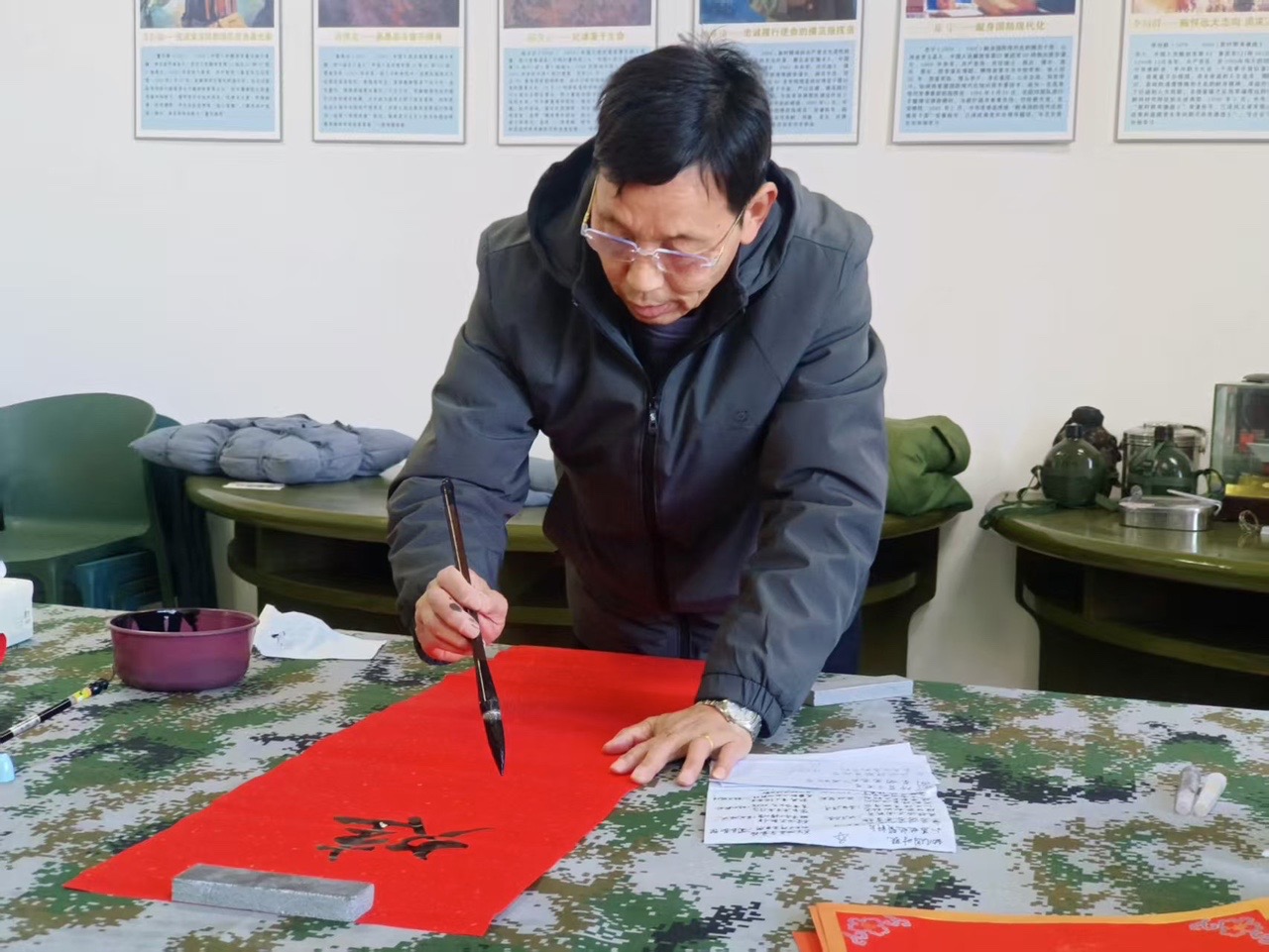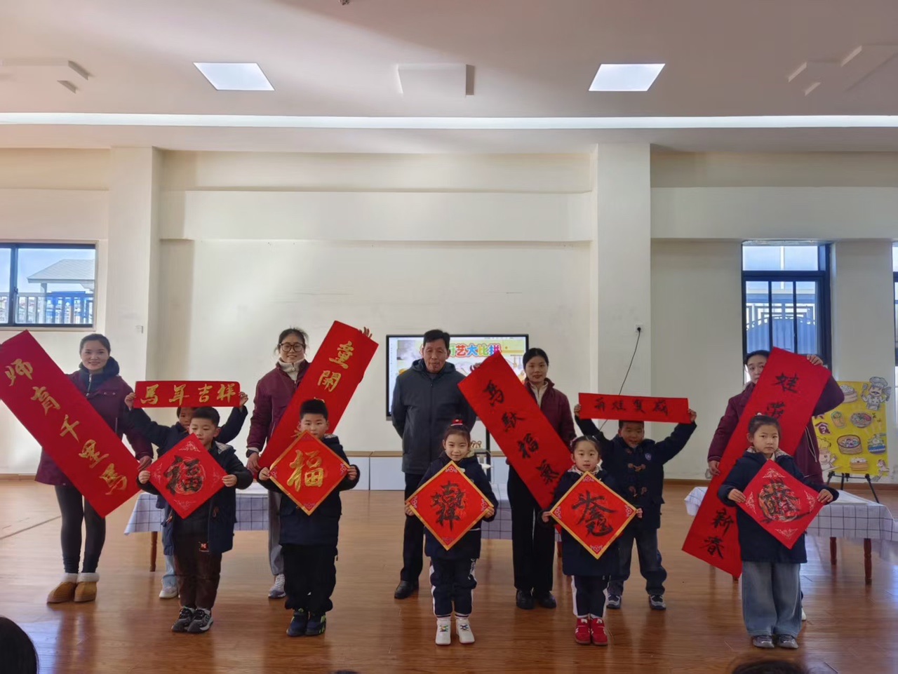 这边面点飘香,那边翰墨飘香。爷爷们则移步书法角,铺纸研墨,挥毫泼墨。笔锋起落间,一幅幅笔力遒劲的春联、一个个喜庆吉祥的“福”字跃然纸上。孩子们踮着脚尖,好奇地看着爷爷们写字,时不时发出“哇”的赞叹声。爷爷们还耐心地握着孩子的小手,教他们写最简单的笔画,一笔一划间,传承的不仅是书法文化,更是浓浓的祖孙情。