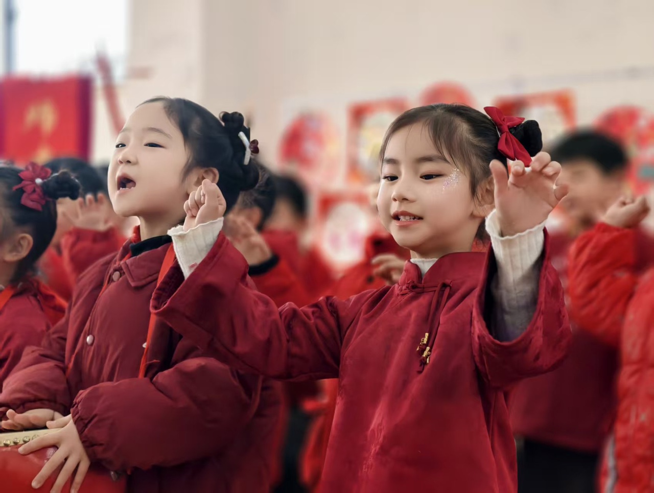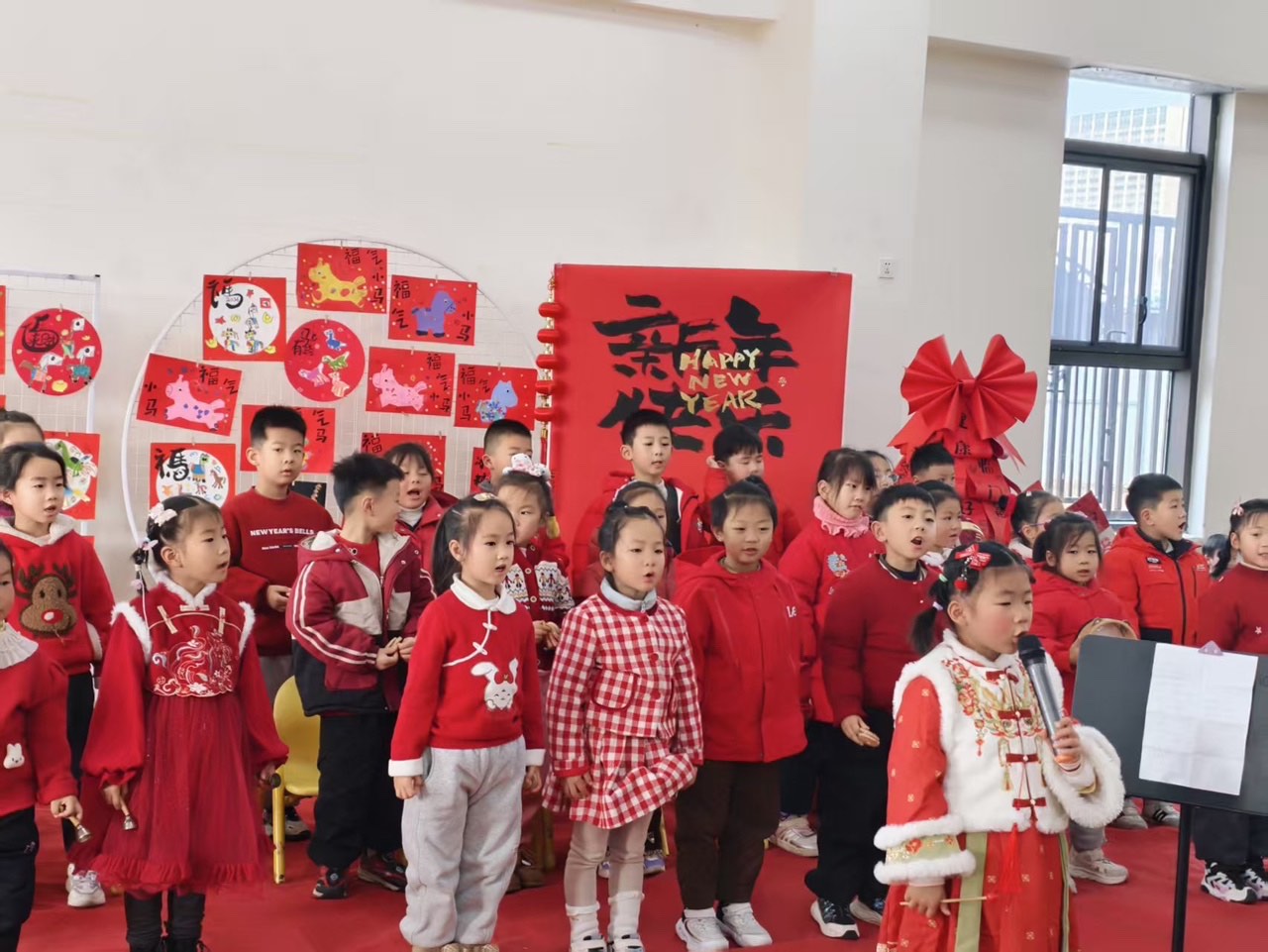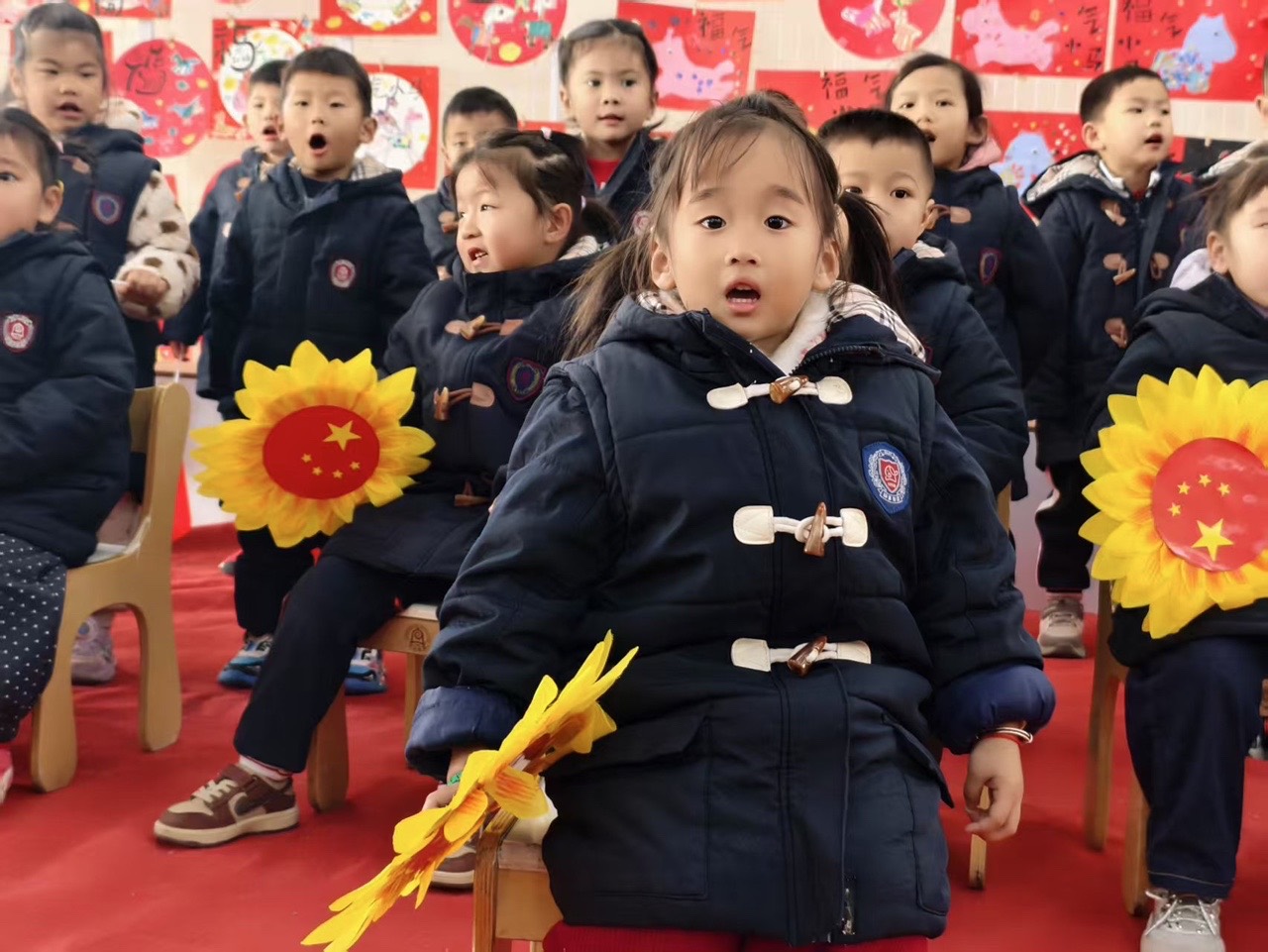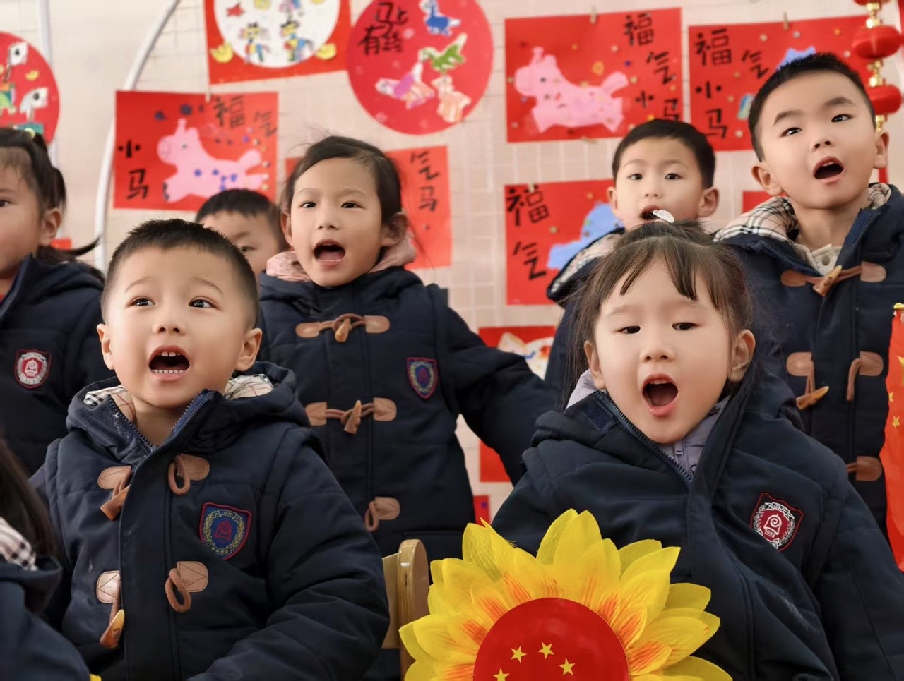 大班的哥哥姐姐们带着满满的朝气登台,一首《红星闪闪》铿锵有力,歌声里满是对英雄的崇敬与敬仰;熟悉的《新年好》旋律响起时,全场瞬间沸腾,孩子们手拉着手,用最响亮的歌声传递祝福,温暖的歌声回荡在校园的每一个角落。他们用红色的旋律献礼新年,也把爱国的种子悄悄播撒在心底。