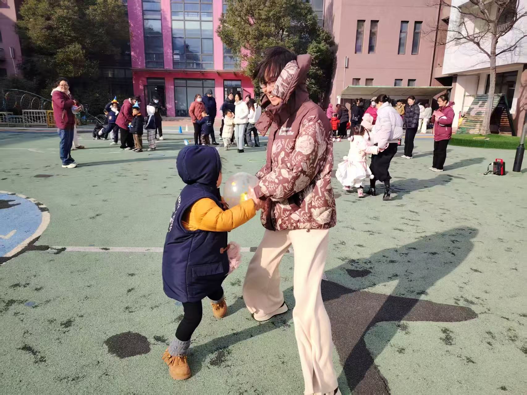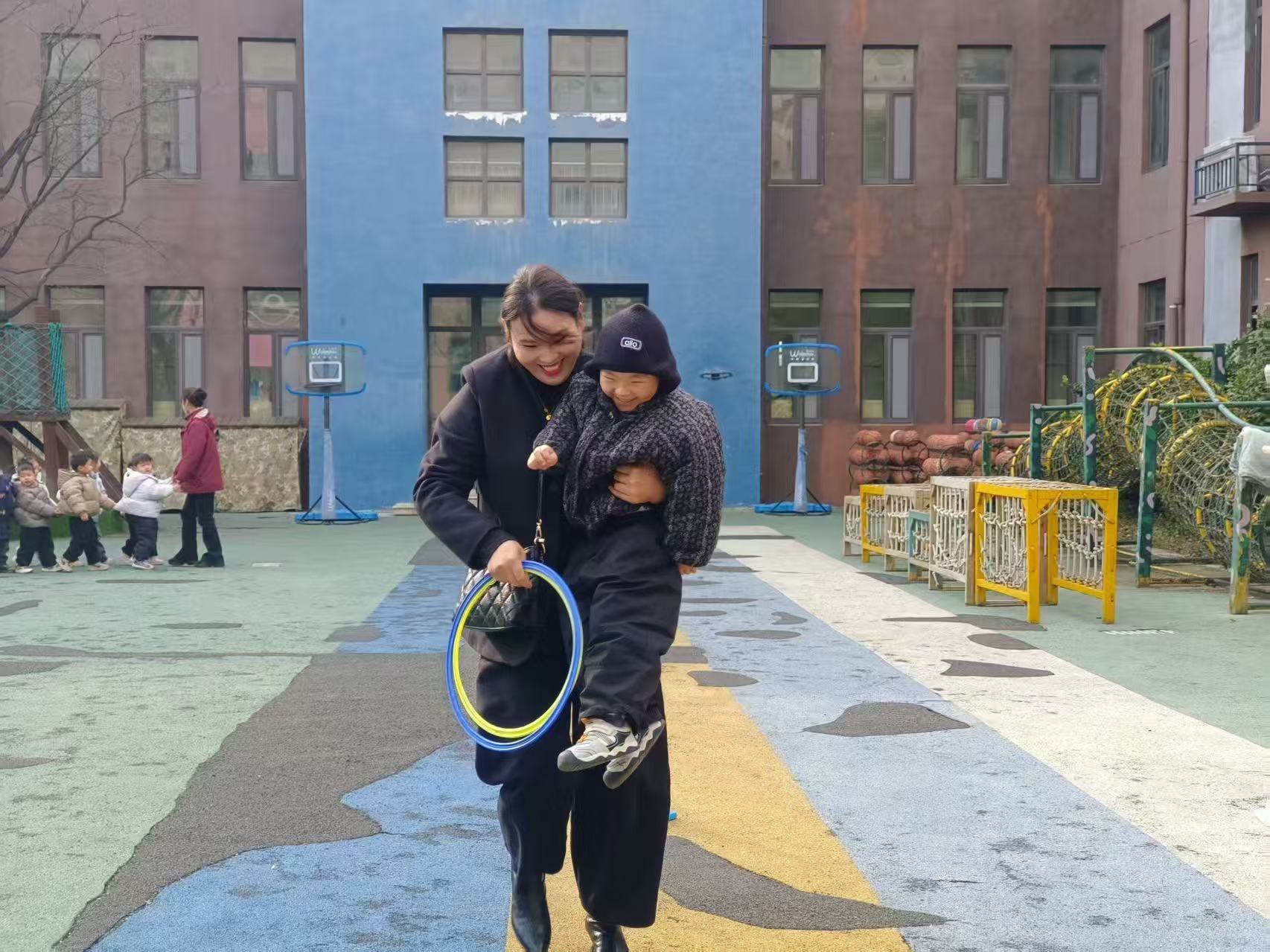 操场上,一场热闹的亲子小游戏正在进行。家长和宝贝们在彩色的圈圈旁默契配合,时而追逐,时而欢笑,温暖的阳光下,亲子间的亲密互动让整个乐园都充满了活力。
