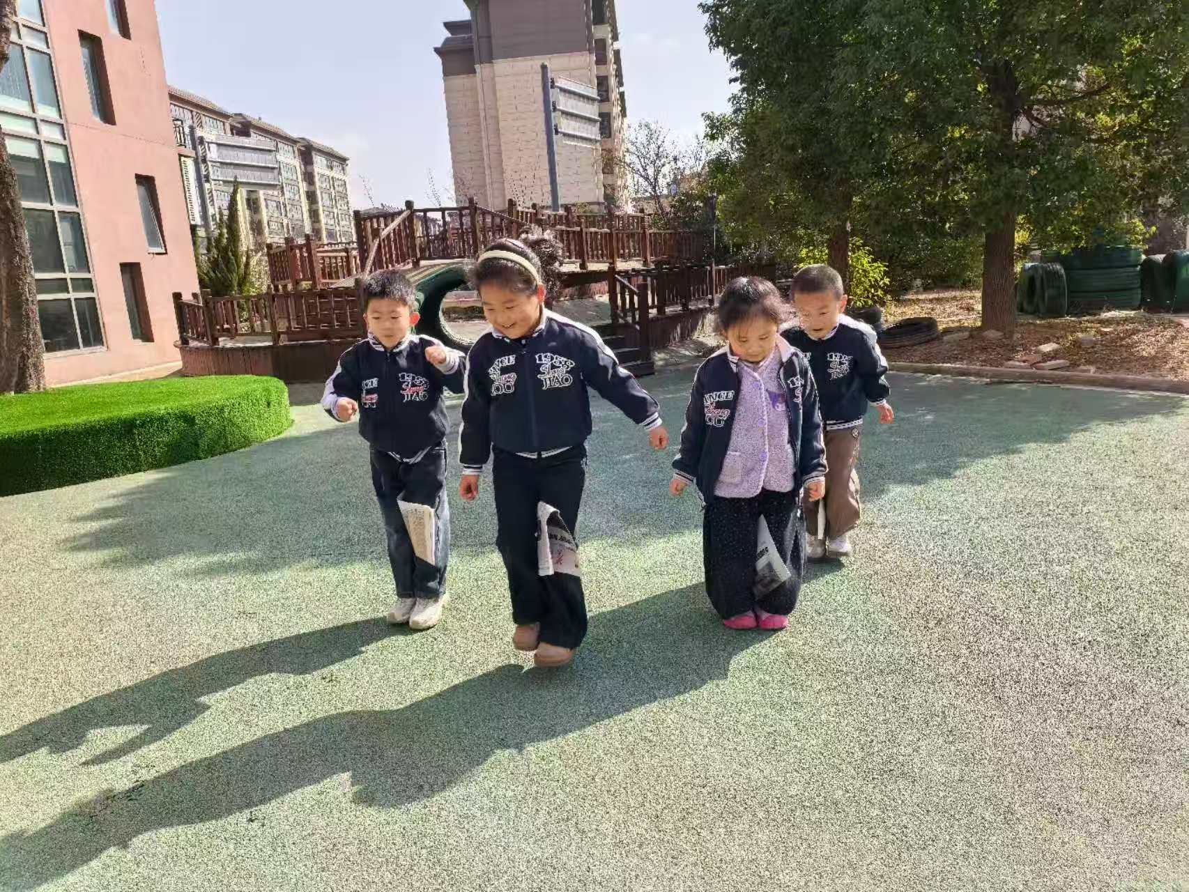 玩法:将报纸贴在胸前,双手张开不触碰报纸,听口令从起点跑向终点,保持报纸不掉落。