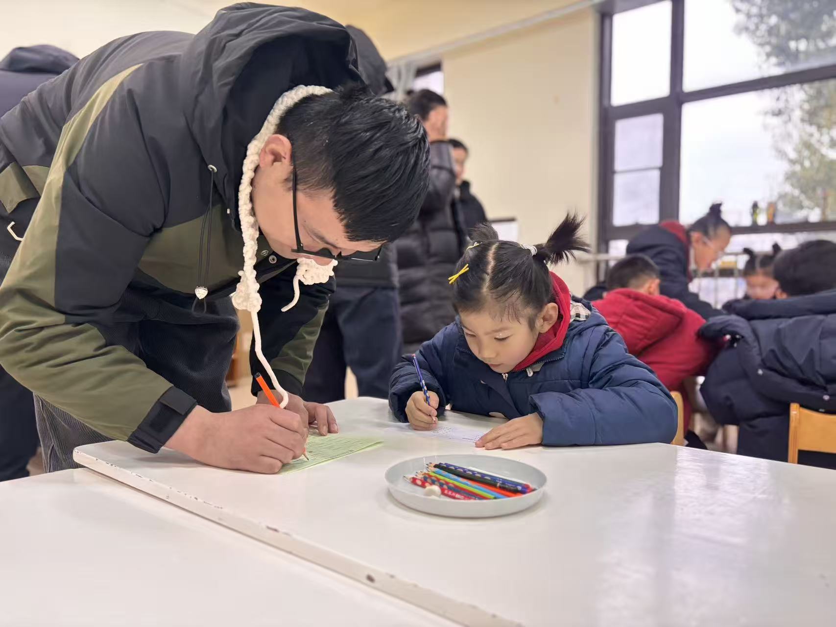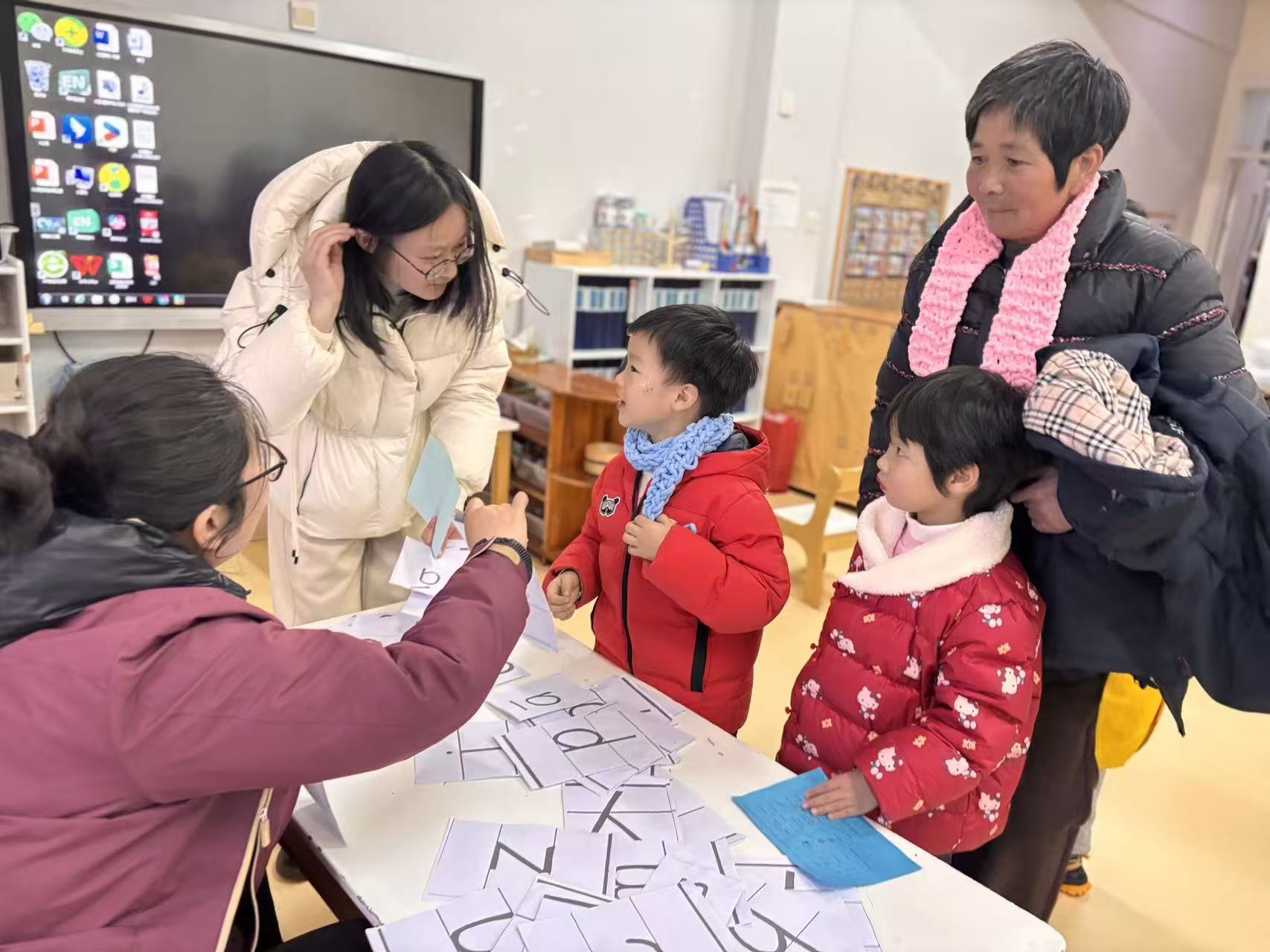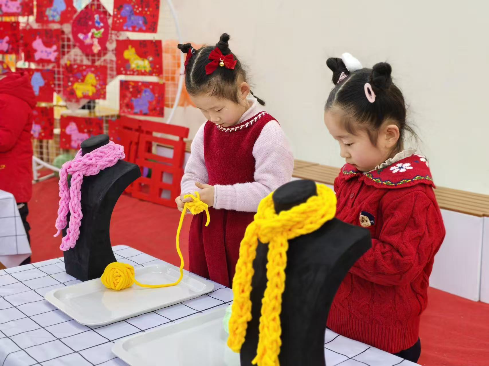 没有复杂的工具,只用一双稚嫩小手。孩子们化身小小编织师,专注地穿梭在彩线之间,一圈又一圈,把温柔与感恩织进软软的毛线里。当亲手织就的围巾围在家长颈间,那份来自掌心的温度,成了这个冬天最珍贵的礼物。