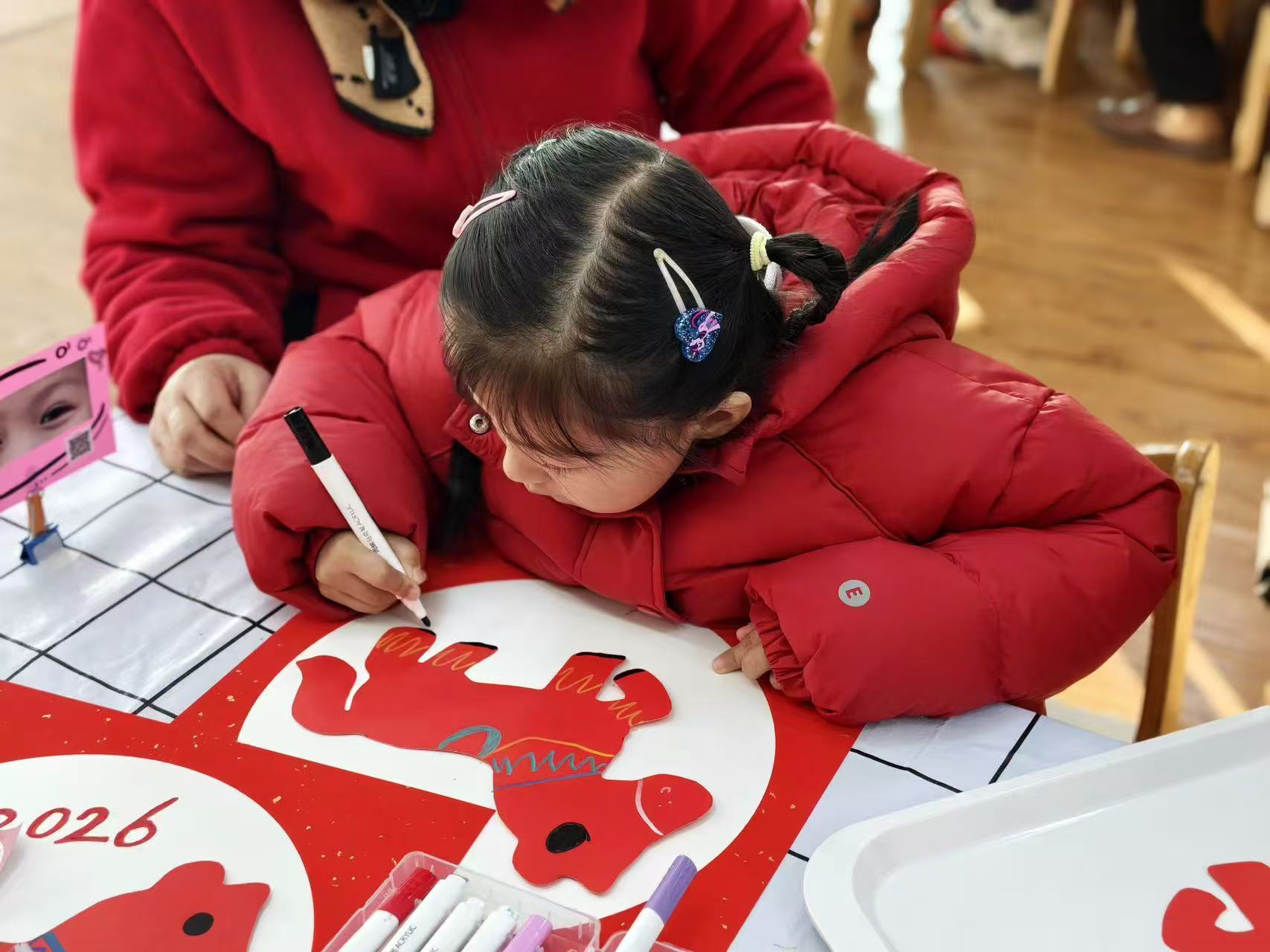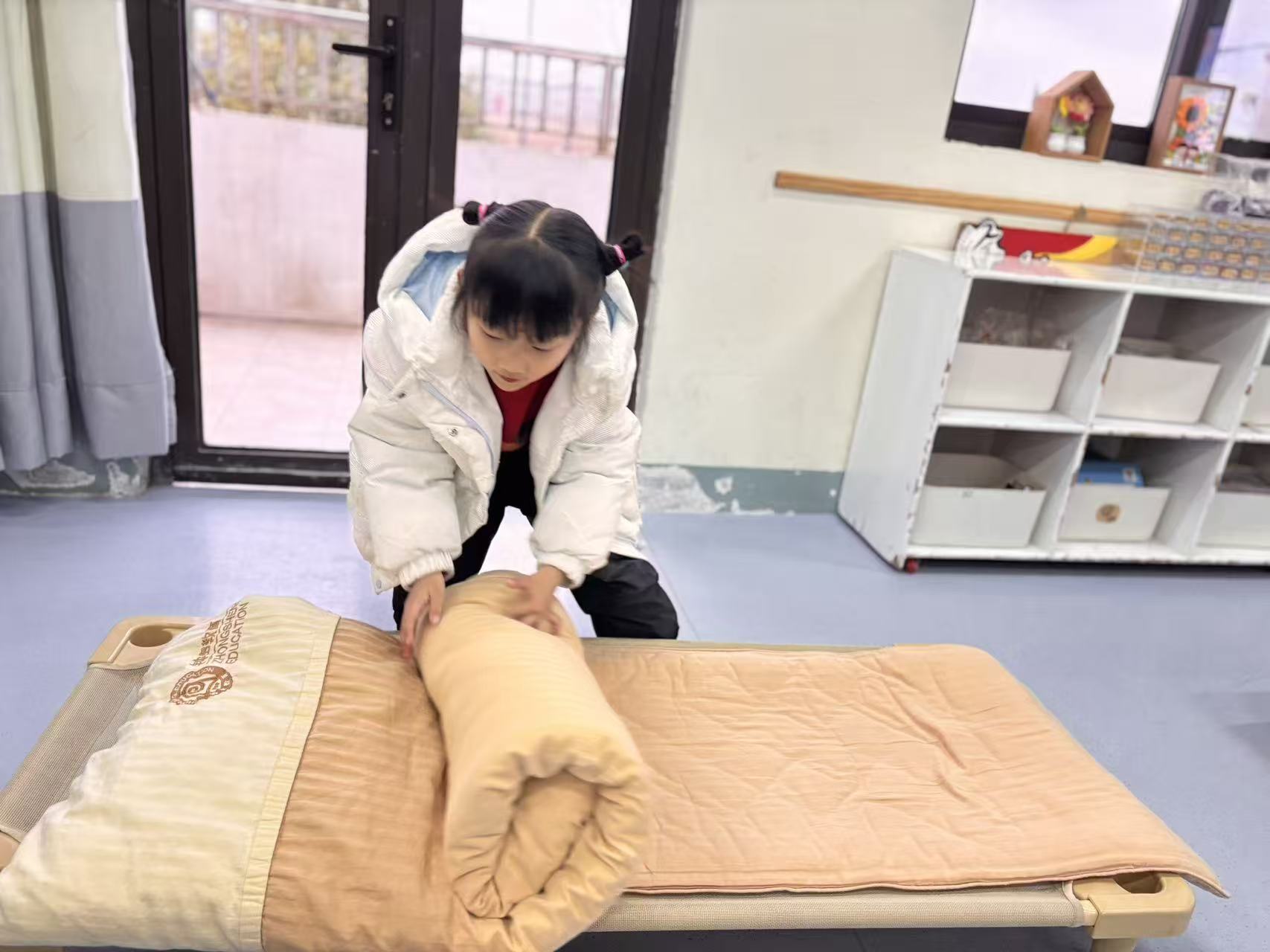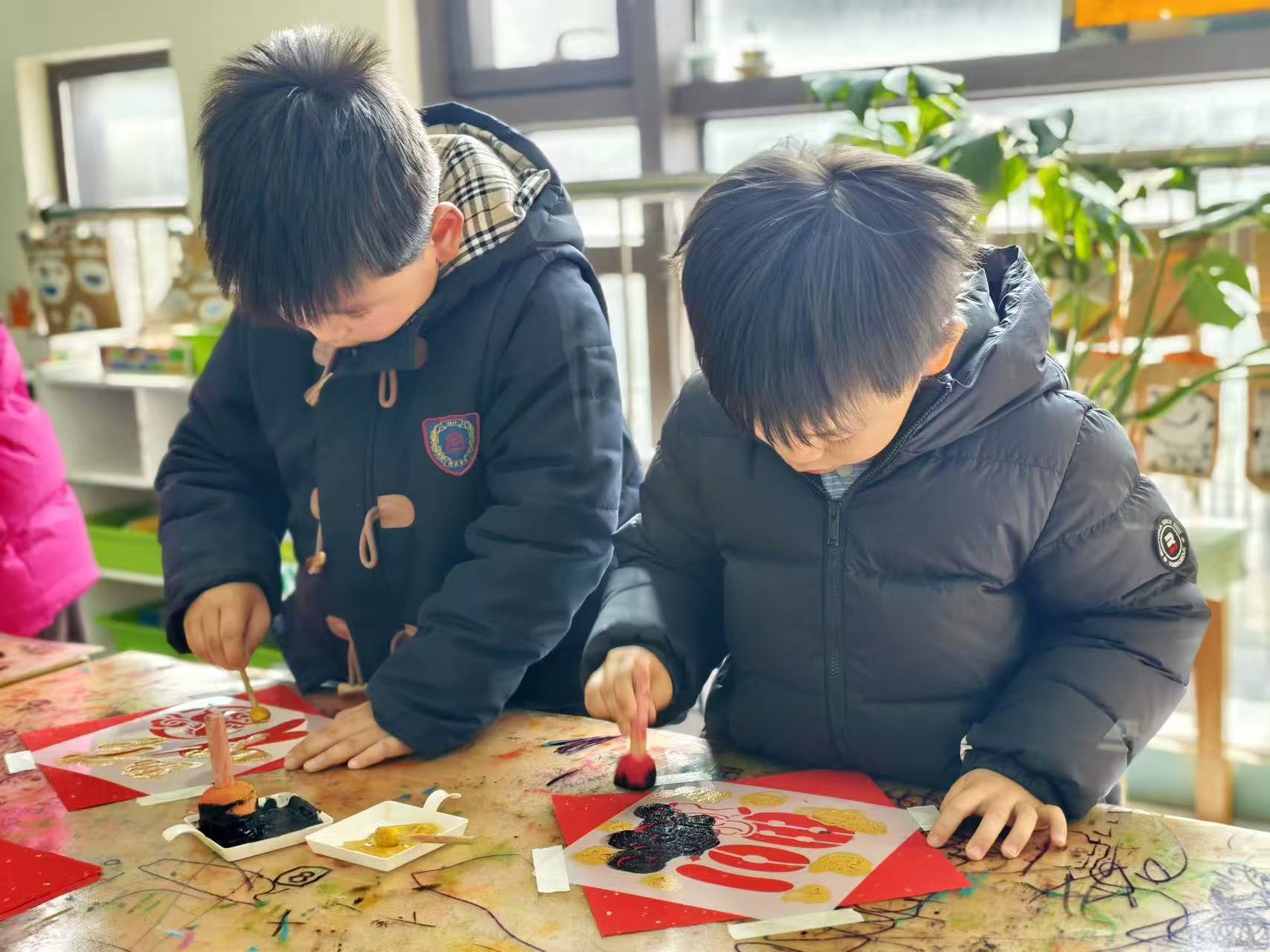 用拓印、绘画等方式,创作出充满年味的艺术作品。红底黑字的福字、色彩斑斓的小马图案,每一笔都充满想象力,每一幅都是独一无二的童年印记。独立整理床铺、叠放衣物,动作熟练又规范。认真抚平被角、仔细叠好被子的小身影,都在悄悄告诉我们:他们已经长大,学会了照顾自己。