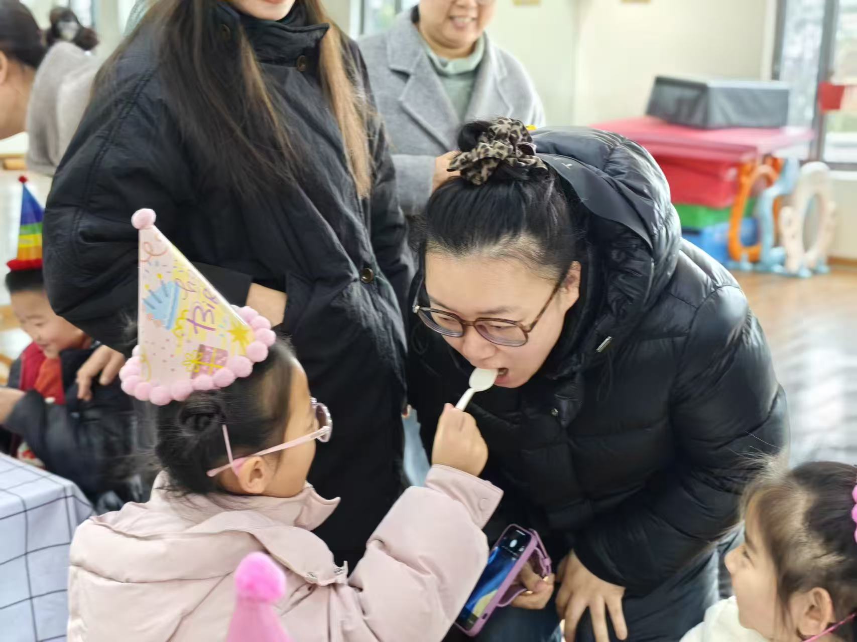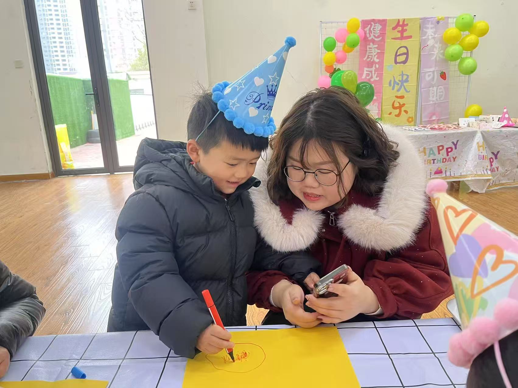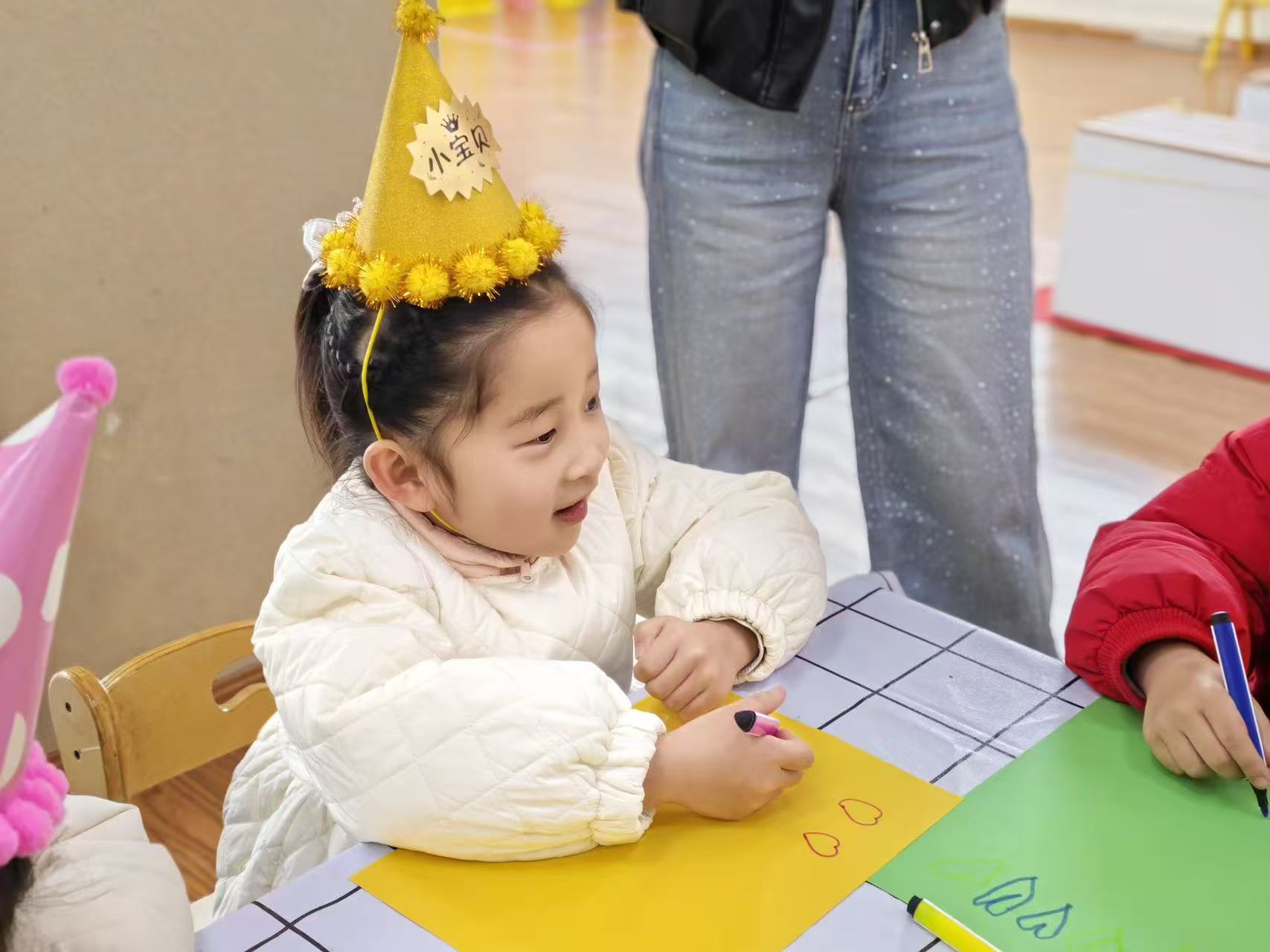 老师带着温柔的笑意走上台前,用亲切的话语拉开了生日会的序幕。一句句真挚的祝福,一个个温暖的期许,让现场瞬间被爱意包裹,小寿星们戴着五彩的生日帽,眼睛里闪烁着期待的光芒,静静等待着属于自己的高光时刻。