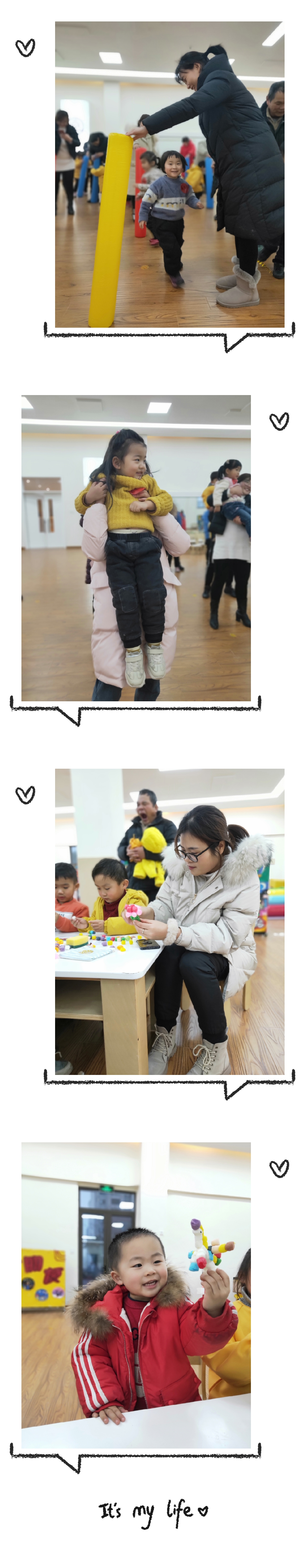 亲子体验课活动的开展,让幼儿在幸福与喜悦中兴趣盎然,孩子们对各种游戏道具保持强烈的好奇心,在主动参与中自我提升,在观察与模仿中共同进步,通过本次亲自体验活动的开展,我们看到并收获了孩子和家长们脸上的喜悦,让我们用心去挖掘,用爱去呵护,给孩子插上梦的翅膀,钟声有爱让我们好在一起!